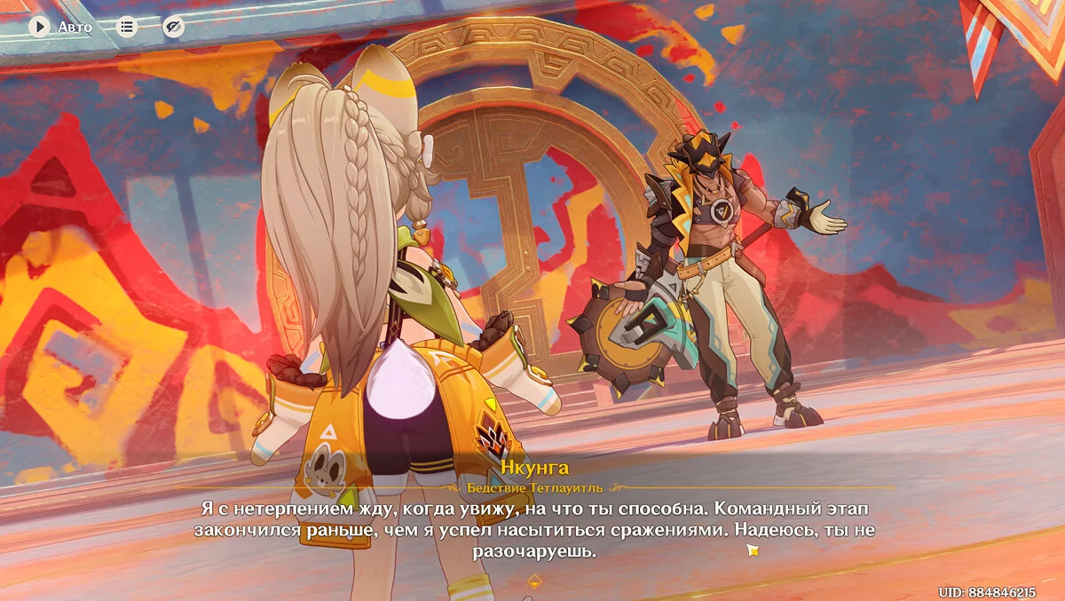 Оказавшись на месте, поговорите с Качиной и сделайте привал. Во время диалога станет известно, что Путешественник неспроста не может получить силу Пиро, и в этом возможно замешан необычный архонт Натлана, который является обычным человеком, а не божеством.