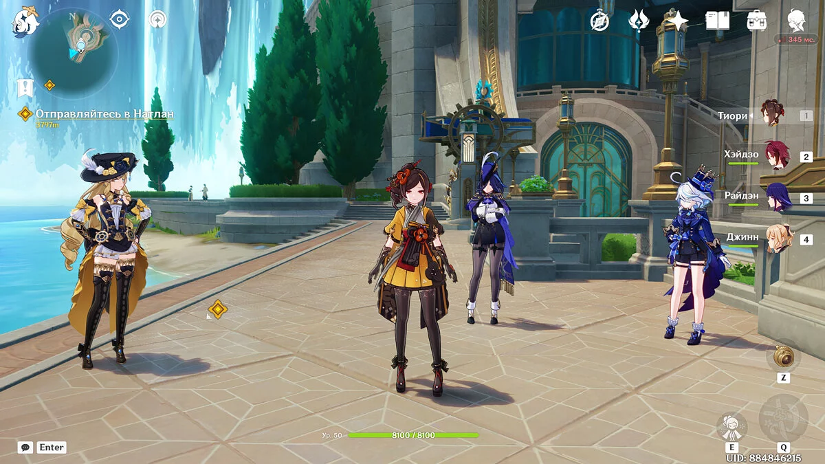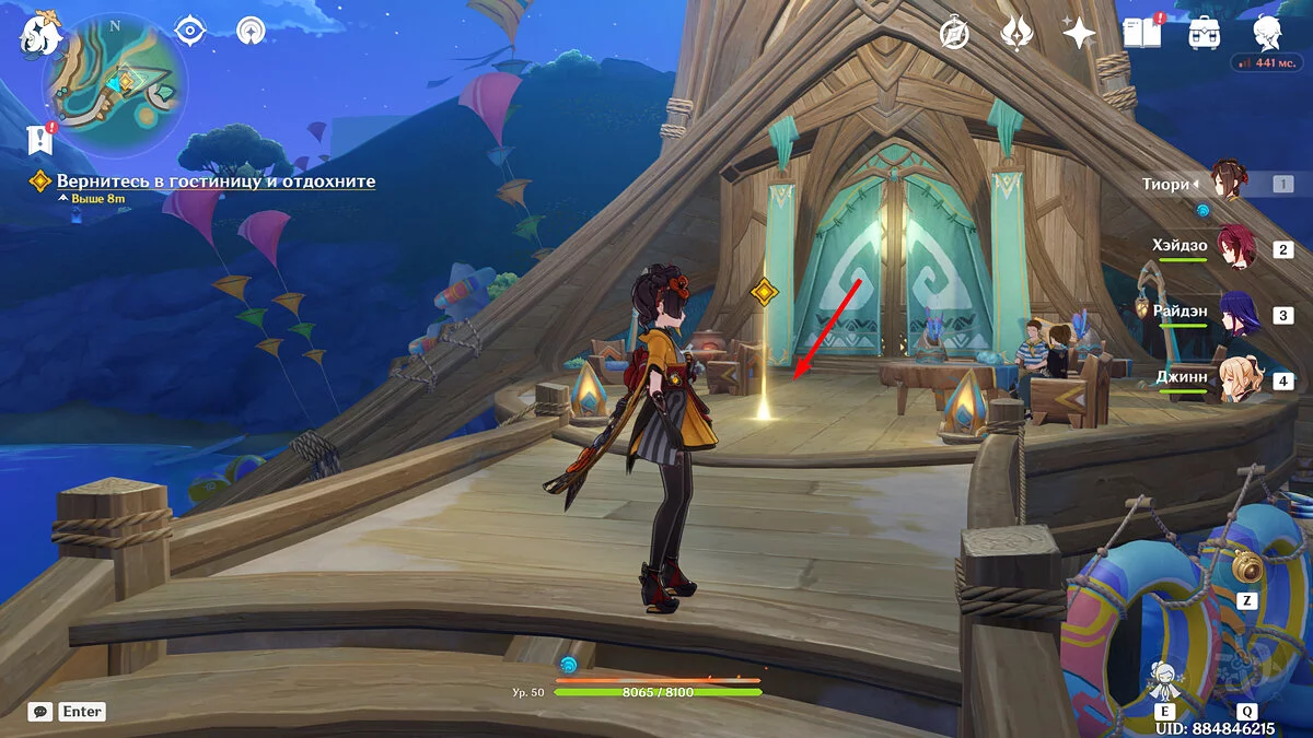 Телепортируйтесь к Статуе Архонта в порте Ромарин и идите непосредственно к монументу, огибая лифт. После чего смело прыгайте вниз к причалу и идите к месту, подсвеченному лучом. Поговорите с Навией, Клориндой, Шарлоттой и Фуриной, сделайте памятную фотографию и отправляйтесь непосредственно в Натлан.