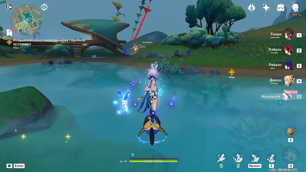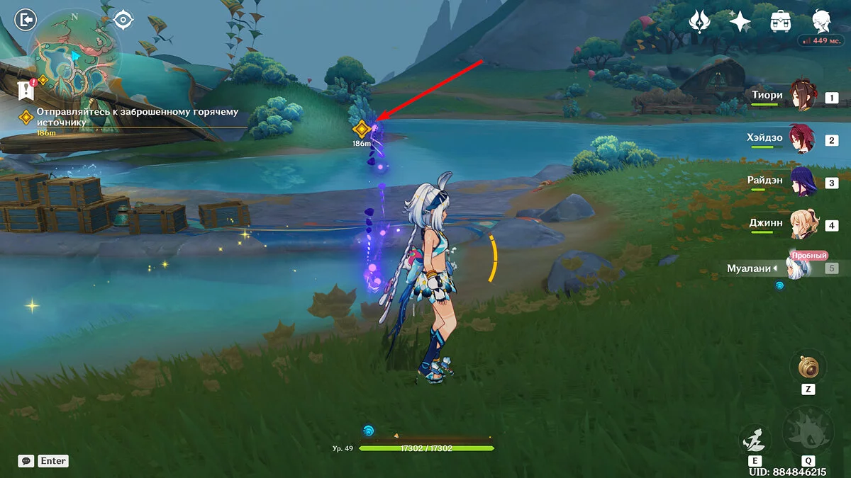 Перед тем как отправляться в племя, лучше открыть все точки телепортации. Само оно находится на юге Натлана и расположилось в Ручьях Тойек. Начать квест можно, если телепортироваться к точке чуть восточнее племени и спуститься чуть ниже по дороге. Поговорите с Муалани и отправляйтесь в горячие источники, однако по всем правилам — сначала опробуйте себя в искусственных бассейнах.