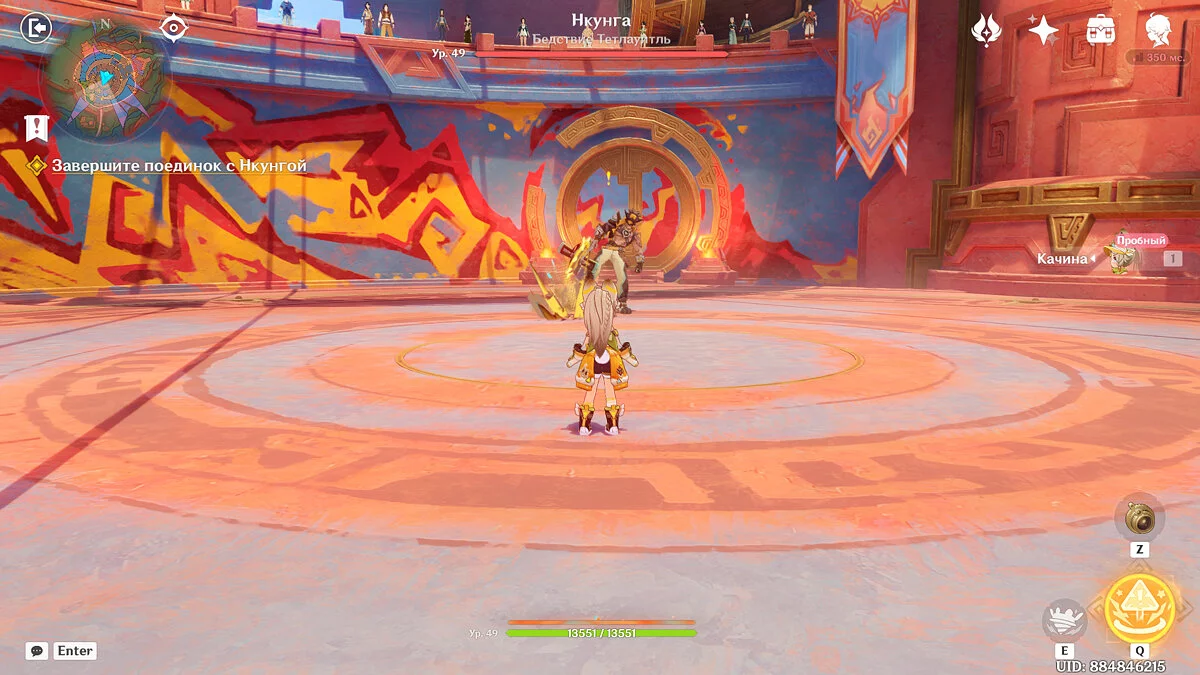 Первым противником Качины станет Нкунга. Он довольно лёгок: достаточно уклоняться от его камней, затем атаковать, когда НПС будет переводить дух и использовать все скиллы девочки. Кроме того, если её здоровье достигнет критической отметки, то можно пользоваться едой, причем не только для восстановления HP, но и для повышения урона.