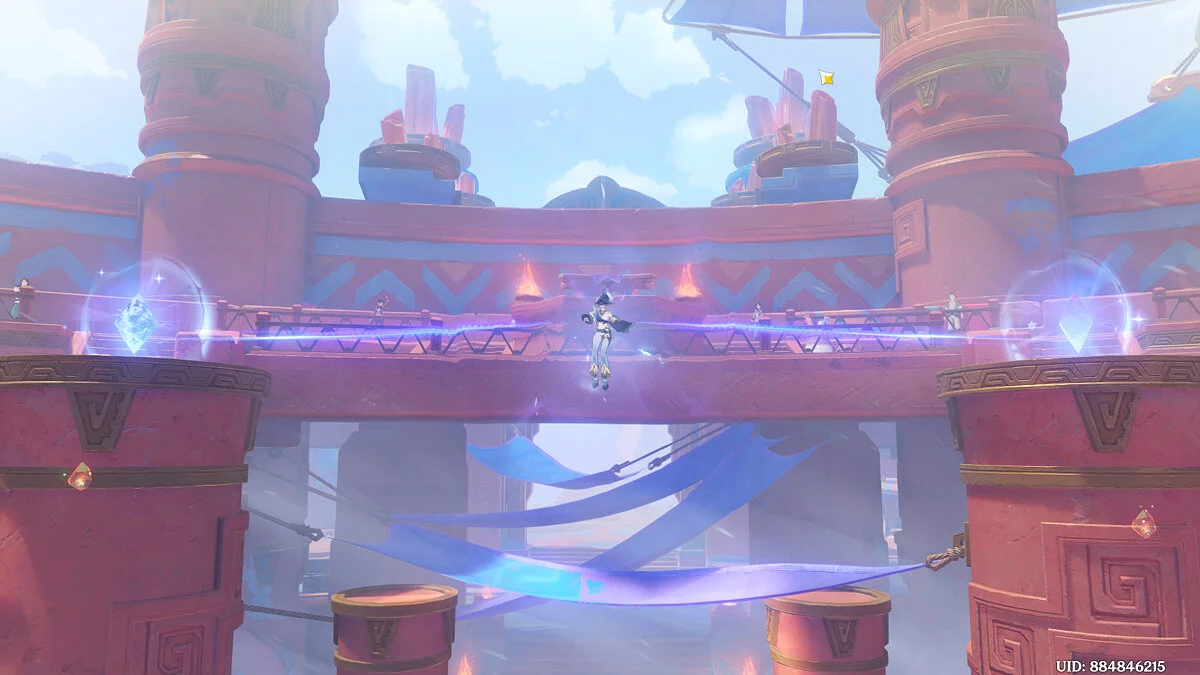 Путешественник хоть и останется на трибуне, но игрок сможет непосредственно поучаствовать в Паломничестве. Вы сможете управлять двумя пробными персонажами, Качиной и Муалани, чтобы принять участие в командном этапе. Цель состязания: победить врагов и собрать три Искры быстрее, чем это сделают противники.