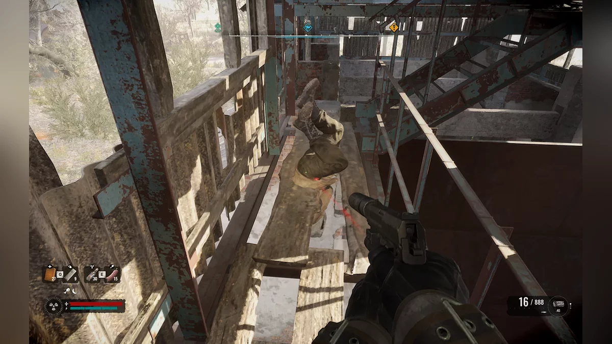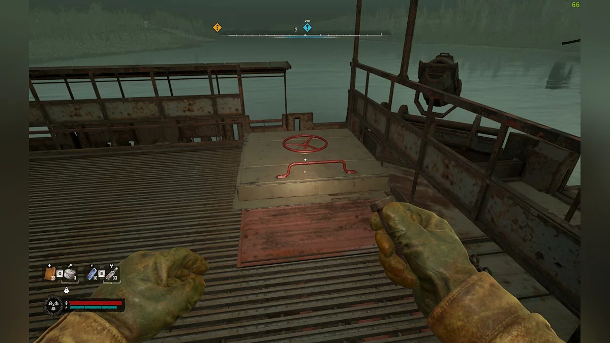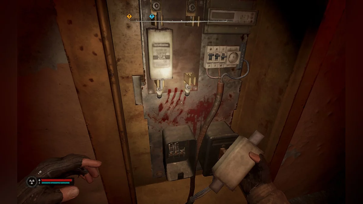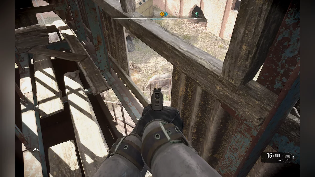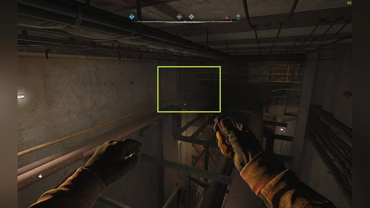 На вышке вы обнаружите рубильник — взаимодействуйте с ним. Потерпев неудачу. отправляйтесь к новому маркеру. Заберитесь к антенне связи по доскам и активируйте еще один рубильник, чтобы выполнить задание.