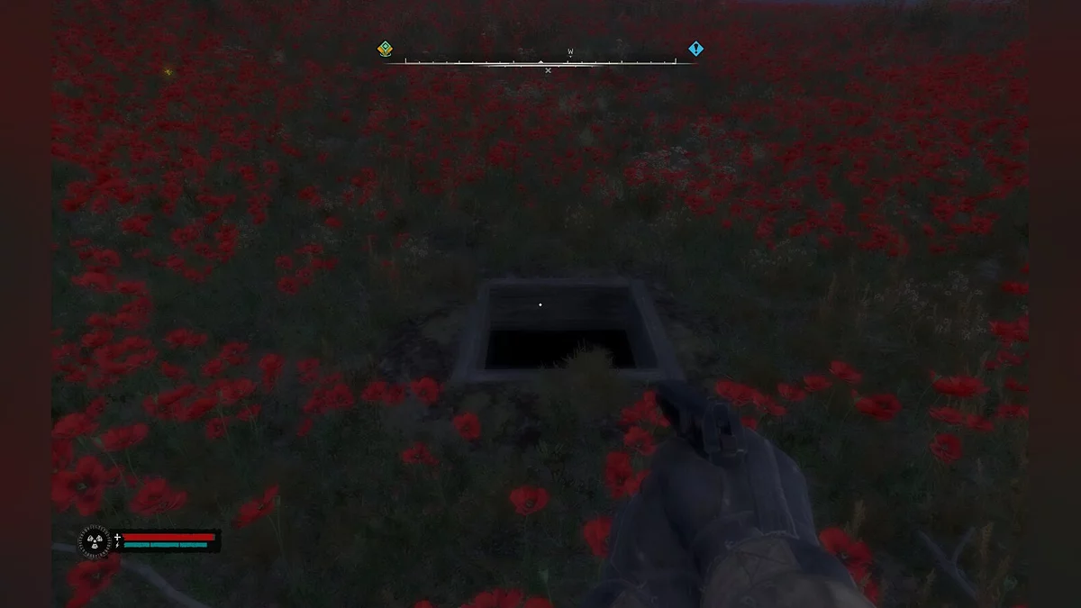 В 70 метрах от отмеченной точки вы наткнетесь на болото, и на этом участке могут возникнуть трудности. Чтобы безопасно добраться до нужного места, достаточно обойти берег с правой стороны, следуя по сухим областям.