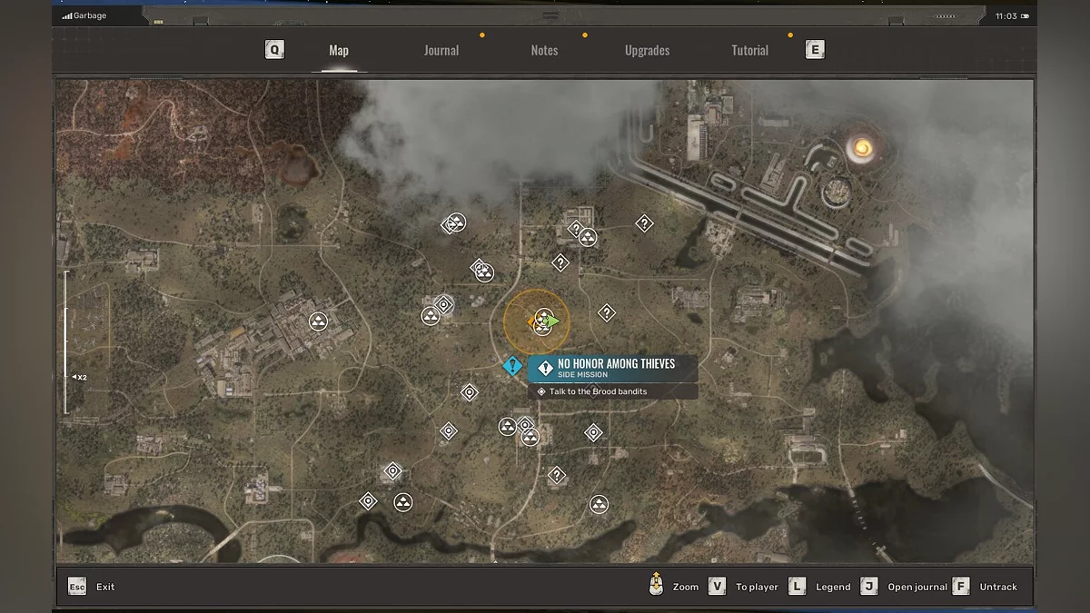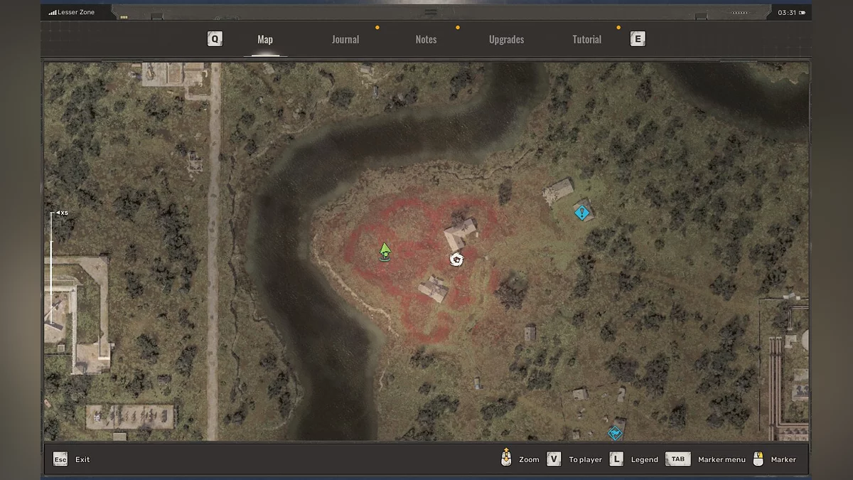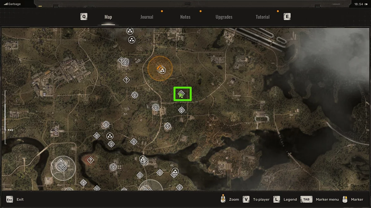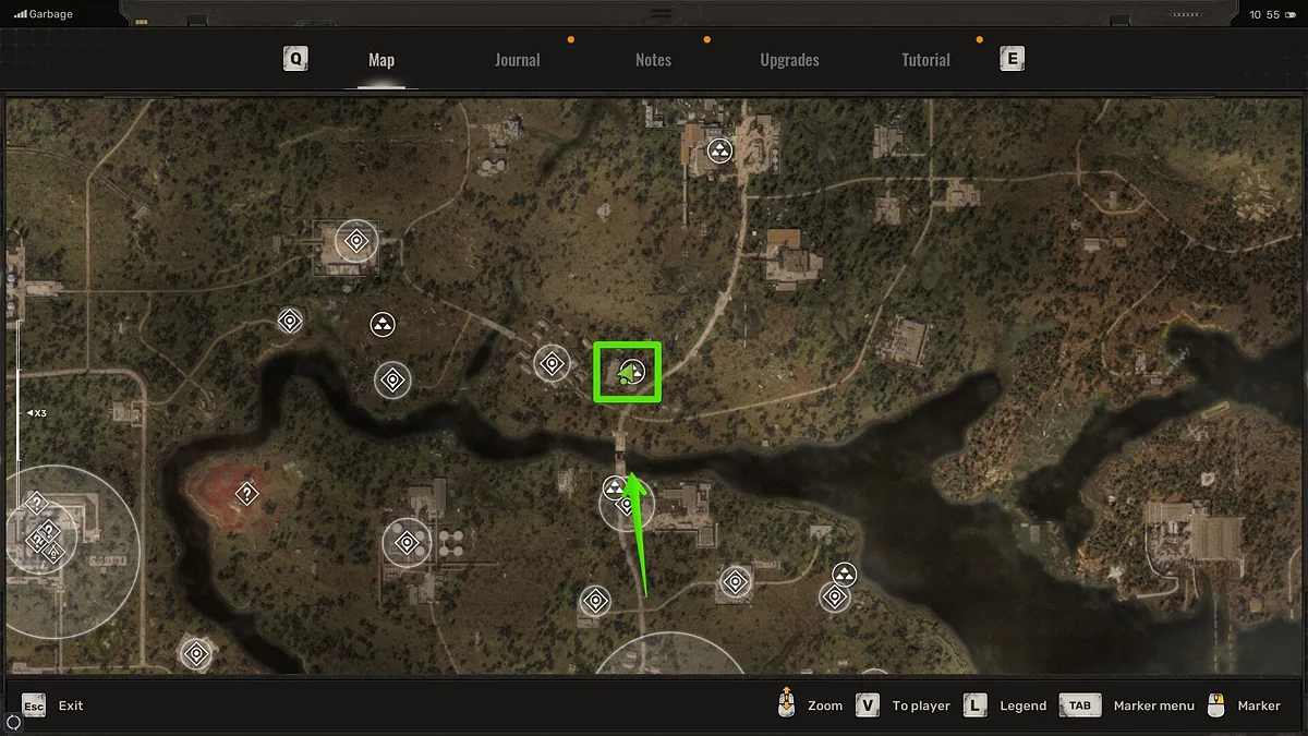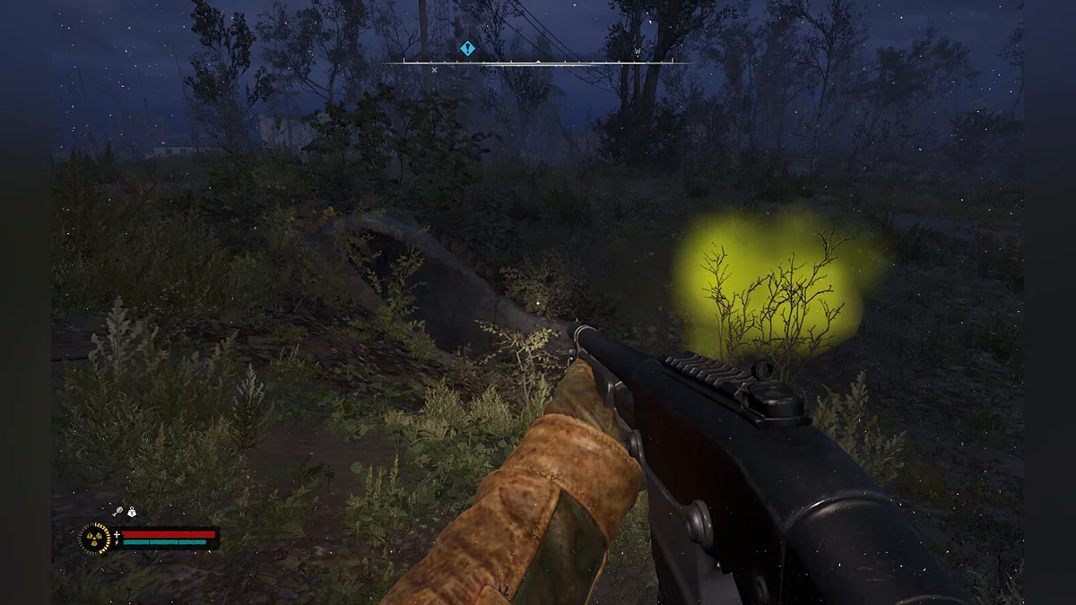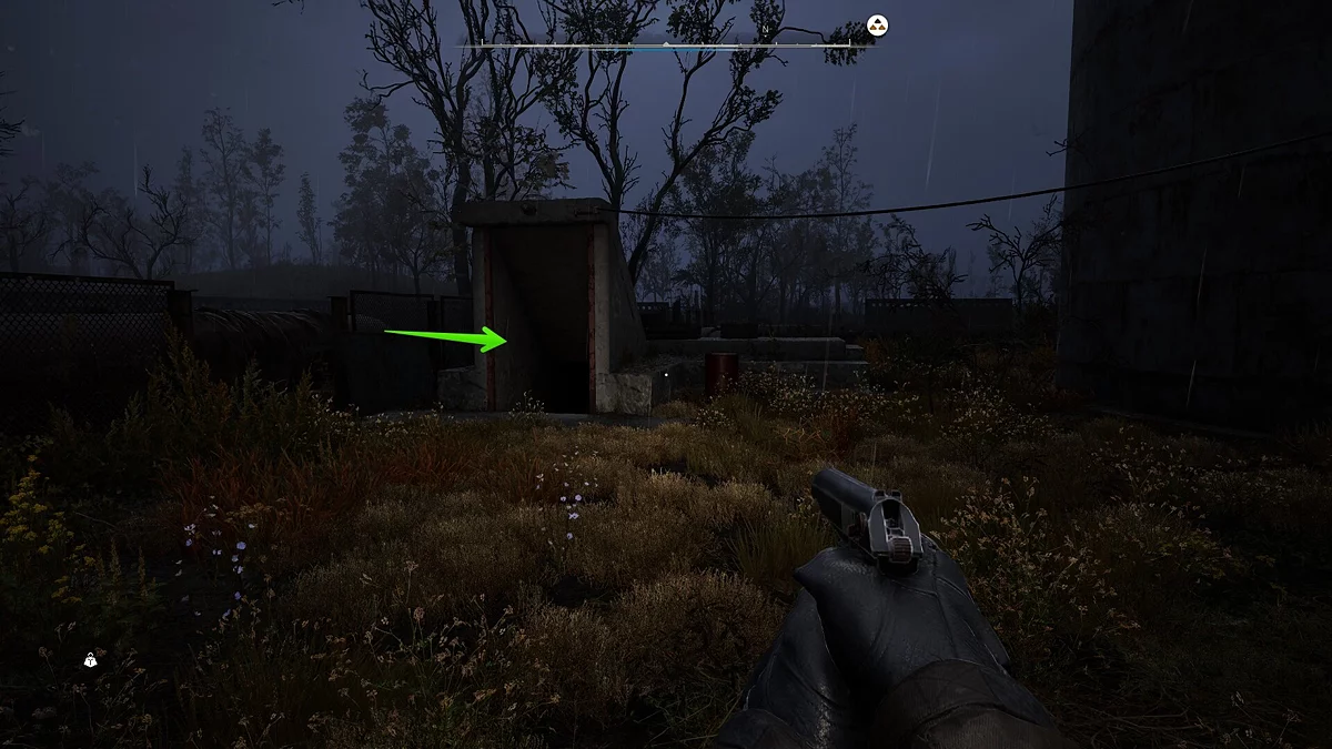 Маркер указывает на северо-запад региона, прямо ко входу в бункер. Это место находится на самой границе с Янтарем, в зоне, где пересекаются несколько опасных территорий.