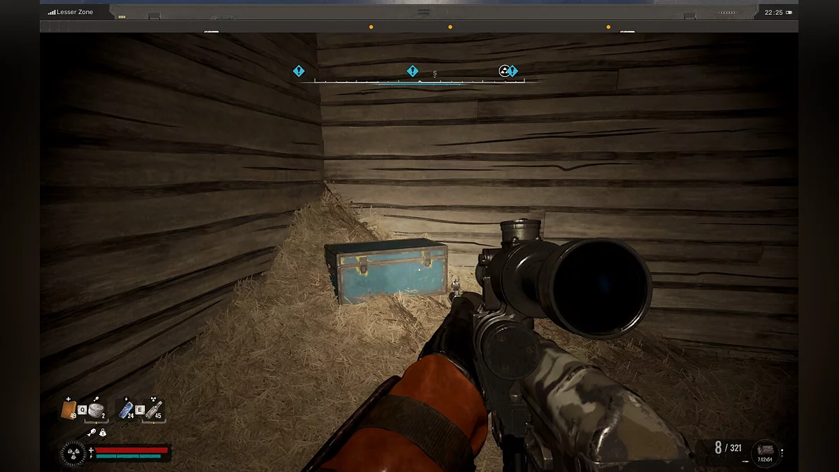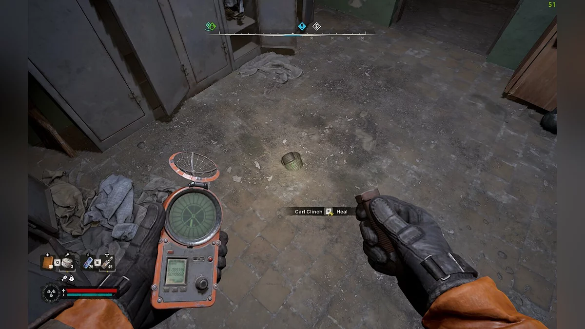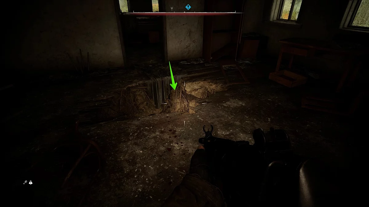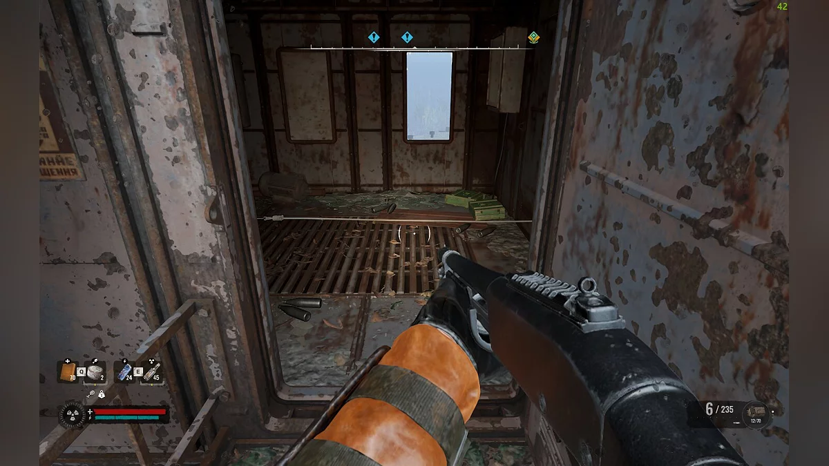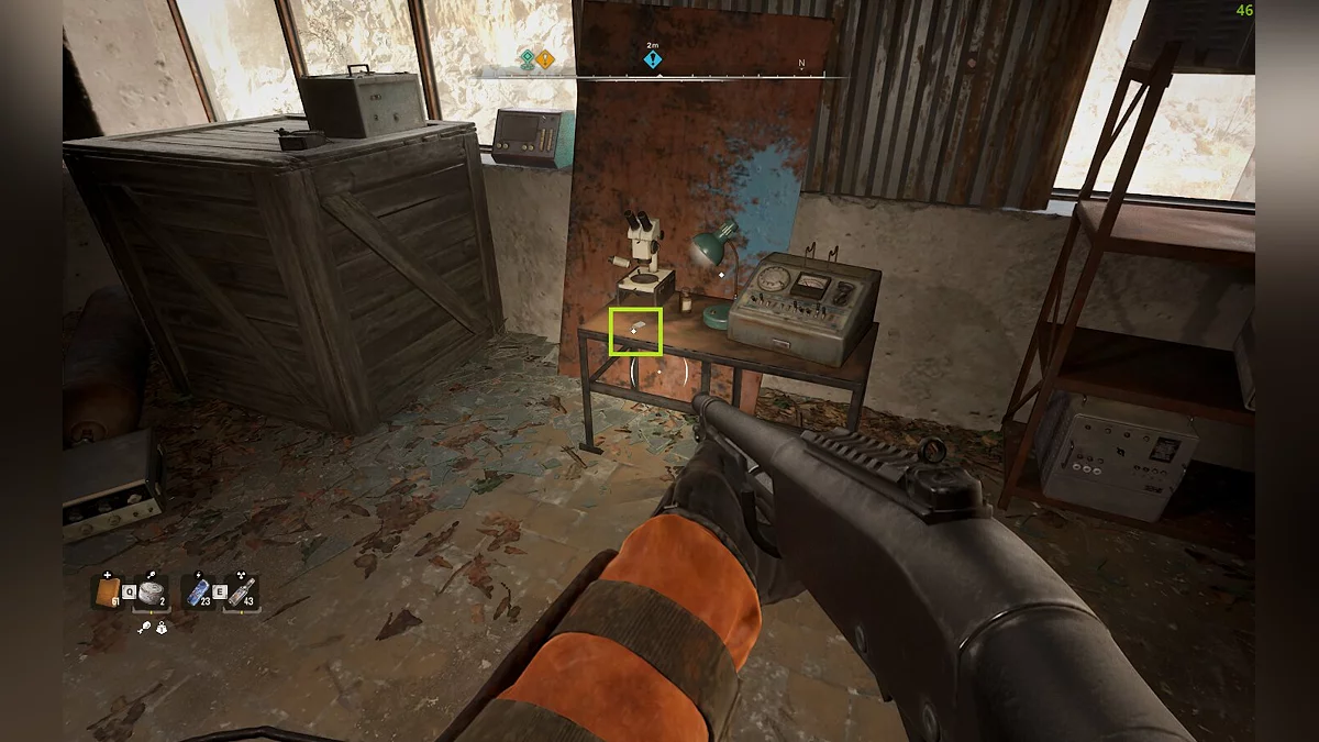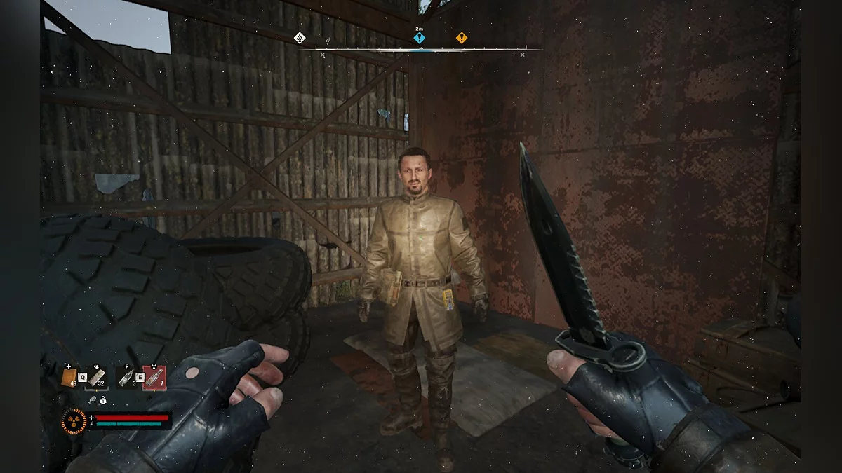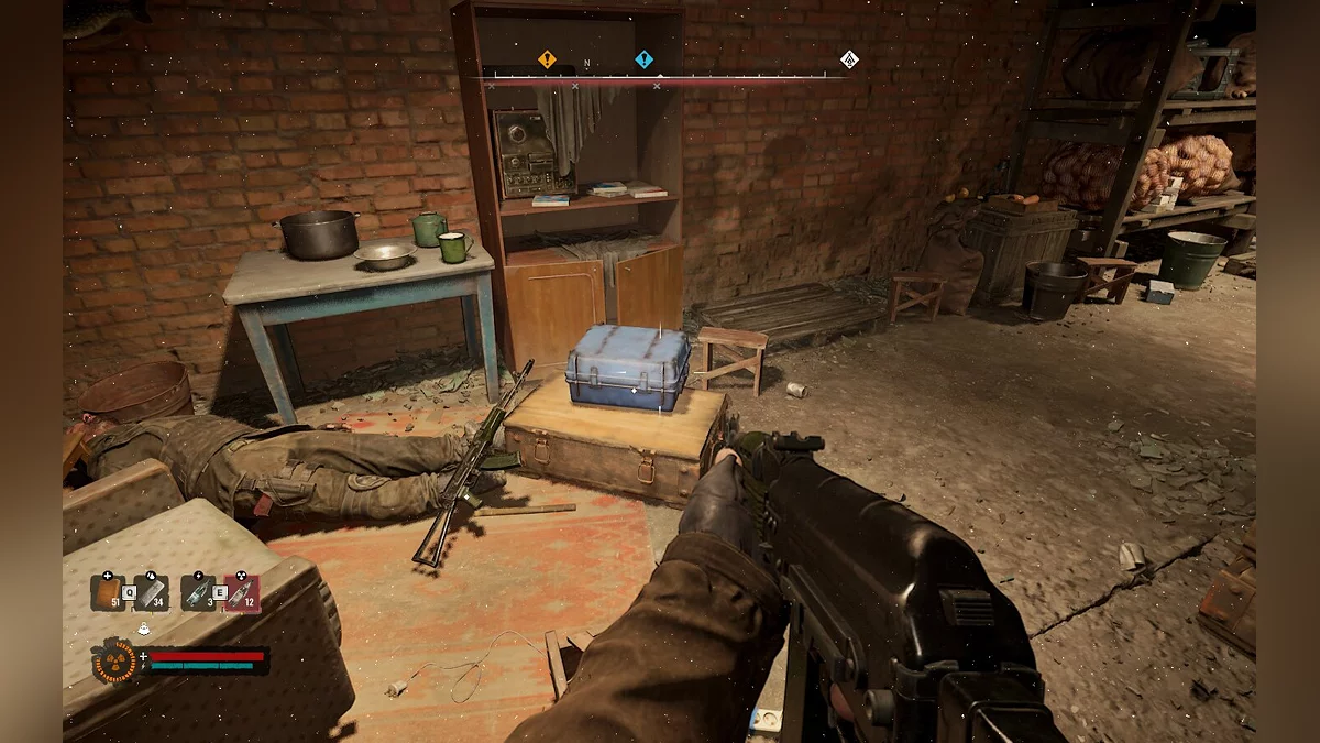 После выполнения этих действий запертая дверь, ведущая на склад со множеством полезных вещей, откроется, и вы сможете забрать всё, что там находится. Затем вернитесь в комнату, где нашли мужчину, включите рубильник возле двери и пройдите через аномалии, используя болты. Когда вы доберетесь до новой синей метки на карте, вас встретит несколько псов — уничтожьте их, обойдите дом и войдите в сарай. Внутри, помимо входа в дом через туннель, вы найдете полезные предметы, таких как медикаменты и патроны.