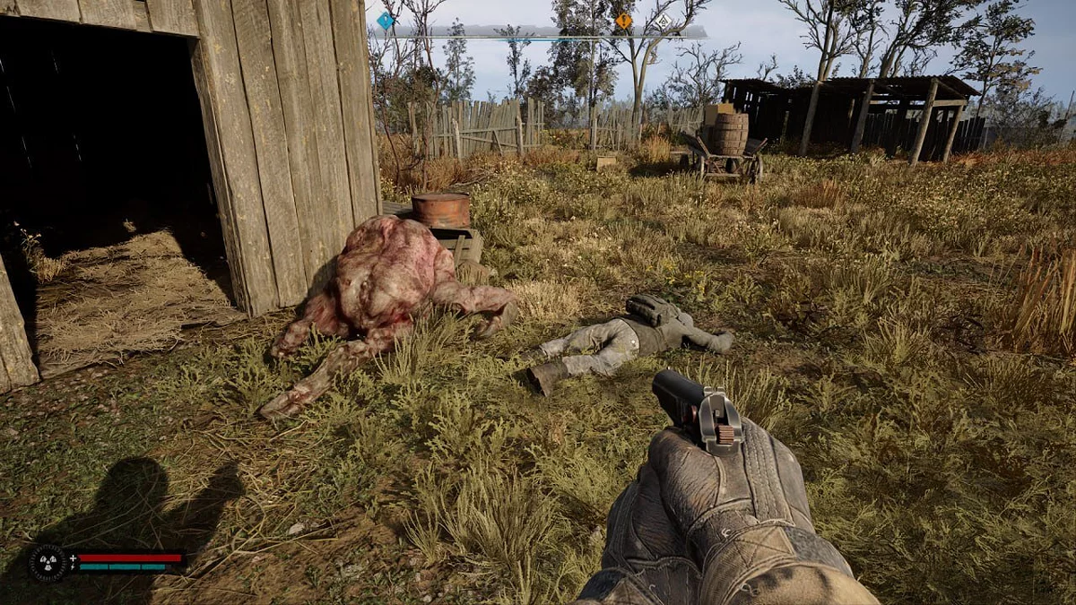 Теперь, когда вам ничего не угрожает, войдите в пастбище, расположенное справа. Именно здесь вы найдете труп Жгута. Взаимодействуйте с ним и заберите КПК.