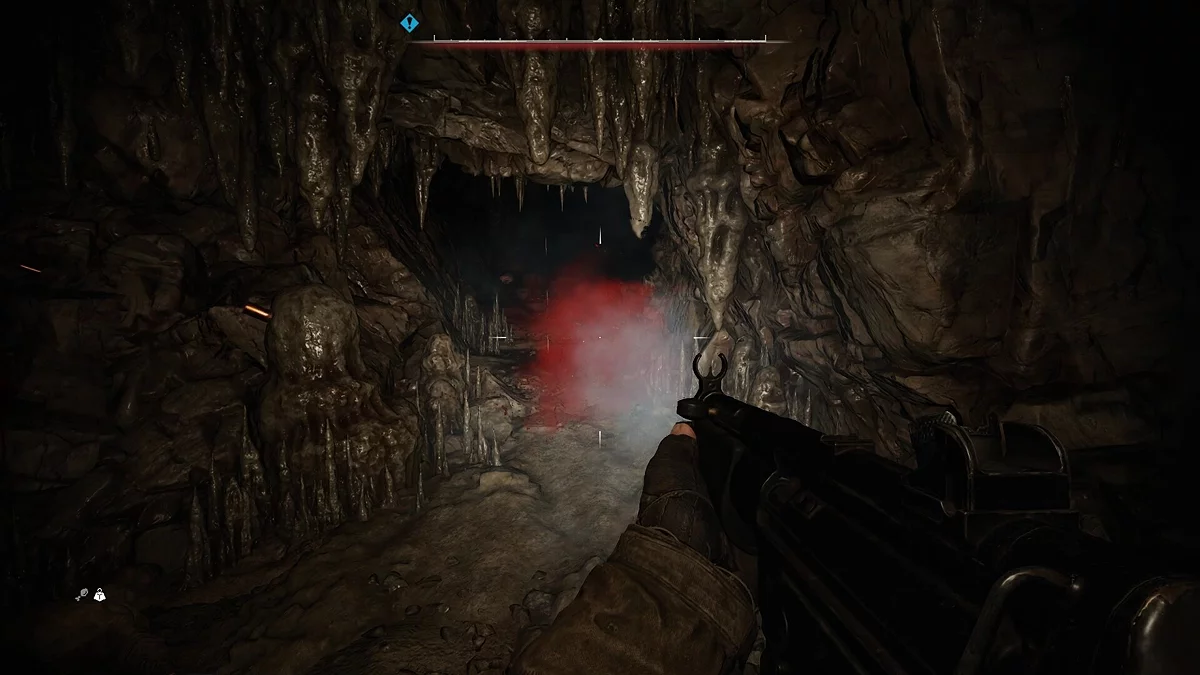 По пути к аномалии вы можете осмотреть несколько трупов (один из них можно найти, если пройти по воде в правую часть пещеры). Однако очень скоро вы наткнётесь на кровососа. Фанаты серии знают его главную особенность — он становится невидимым и пытается атаковать врага со спины.