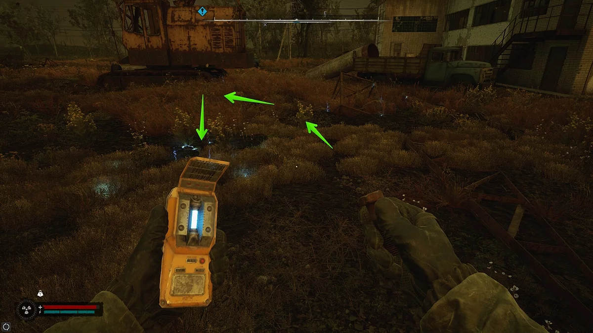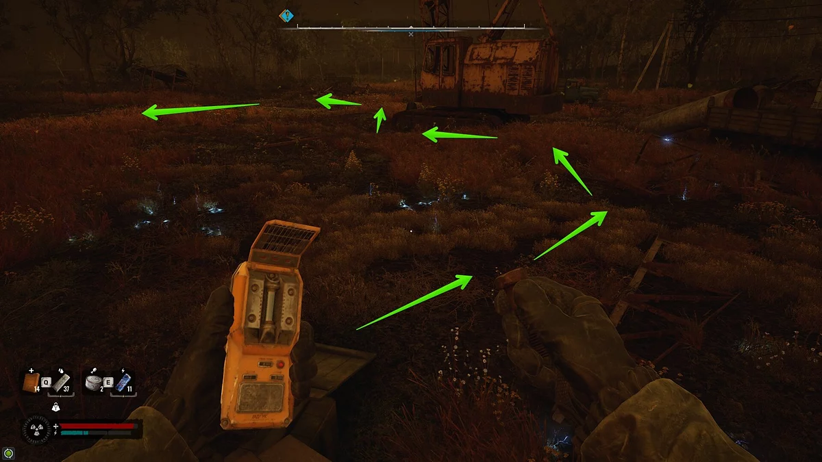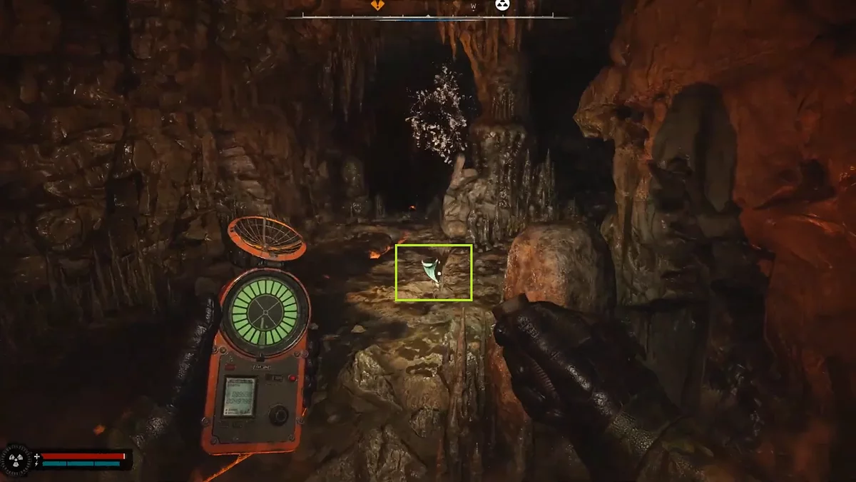 Расправившись с ним, продолжайте движение по пещере и осмотр трупов. Когда окажетесь у аномалии, возьмите в руки свой обычный детектор и следуйте за сигналом. Отметим, что все артефакты буквально «плавают» в аномалиях — они не находятся на одном месте, так что вам, вероятно, придётся постараться, чтобы отыскать их.