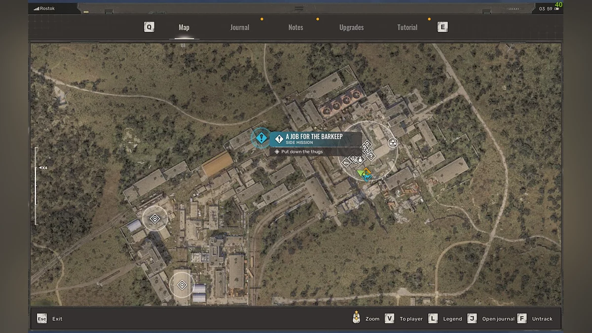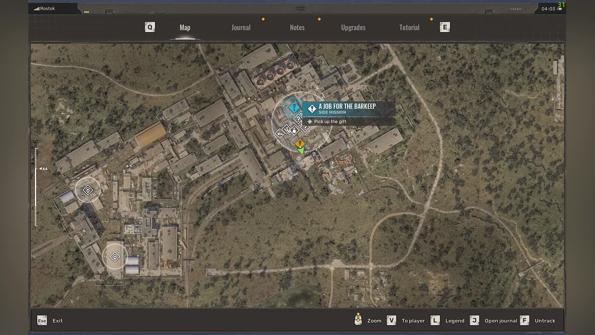 Бармен — один из трех торговцев, обитающих на локации Росток, однако только он может предложить побочные задания, которые могут принесут полезные награды. Спуститесь в его бар, пообщайтесь с ним и выберите подходящий пункт задания. После завершения диалога ваша задача — отправиться к отмеченному маркером месту, забрать товар и вернуть его обратно к Бармену.