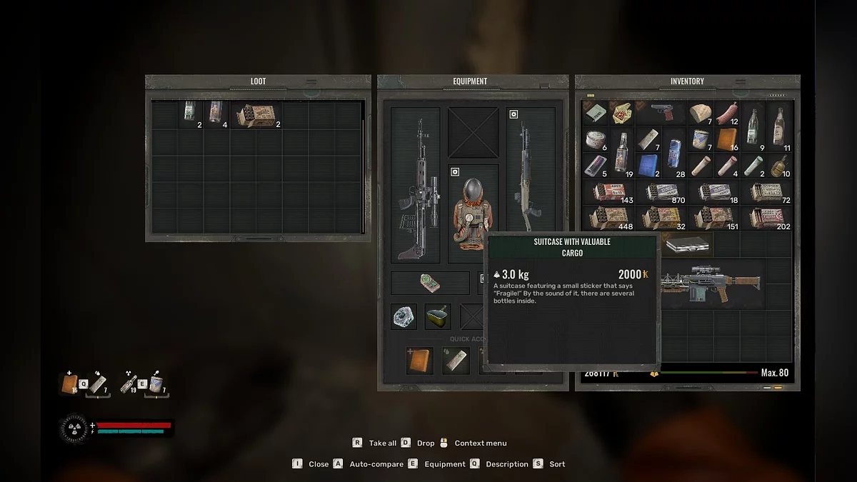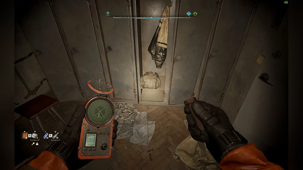 Войдя внутрь здания, поверните налево и зайдите в помещение без двери. Справа от вас будет расположено шесть шкафчиков. Осмотрите четвертый и взаимодействуйте с тайником, чтобы забрать предмет под названием «Чемодан с очень ценным грузом». Кроме того, в схроне вы найдете еду, медикаменты и боеприпасы, которые также сможете забрать без каких-либо последствий.