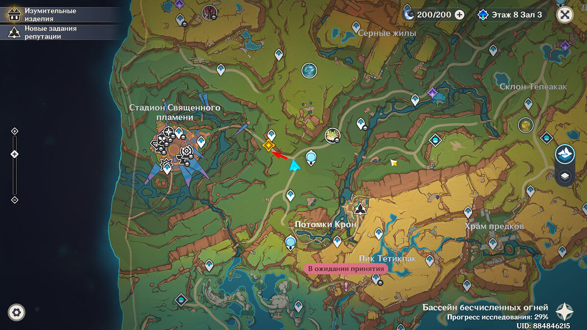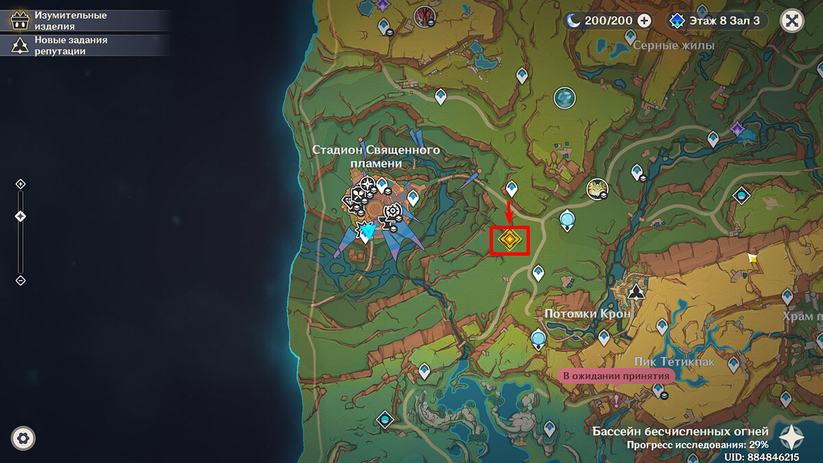 Подождите два дня с окончания предыдущей главы и идите в Гильдию искателей приключений, которая расположена на Стадионе священного пламени. Поговорите с Катериной и выясните обстановку в Натлане, после чего повстречайтесь с Качиной и вместе с девочкой отправляйтесь к Шилонен — узнать всё о будущем древнем имени Путешественника и как его создать.