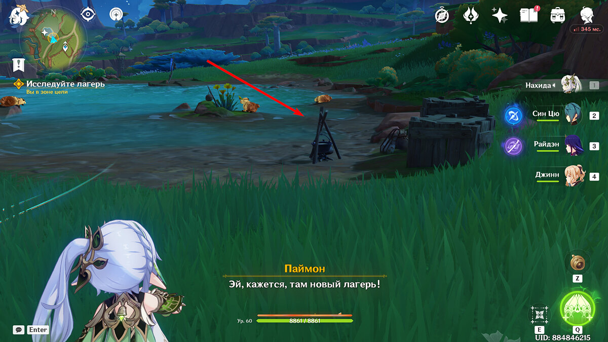 Лагерь, который отыскала Ситлали, находится рядом с подземельем «Огненные руины». Вы сможете опознать их по характерным синим шатрам Фатуи. Подберитесь ближе к нему вместе с девушкой и подслушайте разговор Пиро агента Фатуи и Оророна, после чего одолейте врагов. После сражения поговорите с похищенным пареньком.