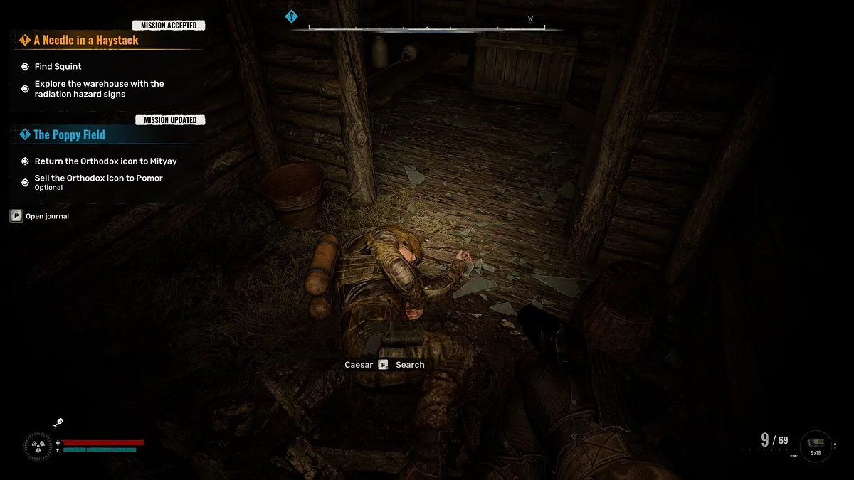 Внимательно осмотрев дом, никакого погреба мы не нашли. Это неудивительно, ведь он расположен в самом неочевидном месте — посреди макового поля позади дома. Используйте метку на карте, чтобы добраться до входа в подвал, затем спрыгивайте вниз. Здесь последнее тело, а на полке лежит нужный по заданию предмет — православная икона.