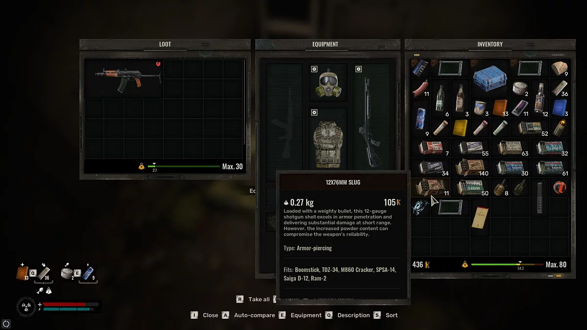 Управление запасами в Stalker 2 требует много времени и внимания. У вас ограниченный инвентарь, как по объему, так и по весу, и вам предстоит тщательно продумать, как максимально эффективно использовать доступное пространство. Попытка носить более двух видов оружия приведет к быстрому превышению лимита веса, особенно если вы хотите взять с собой достаточно медикаментов, еды, напитков и боеприпасов Кроме того, важно оставлять место для ценных предметов, которые вы найдете в Зоне.