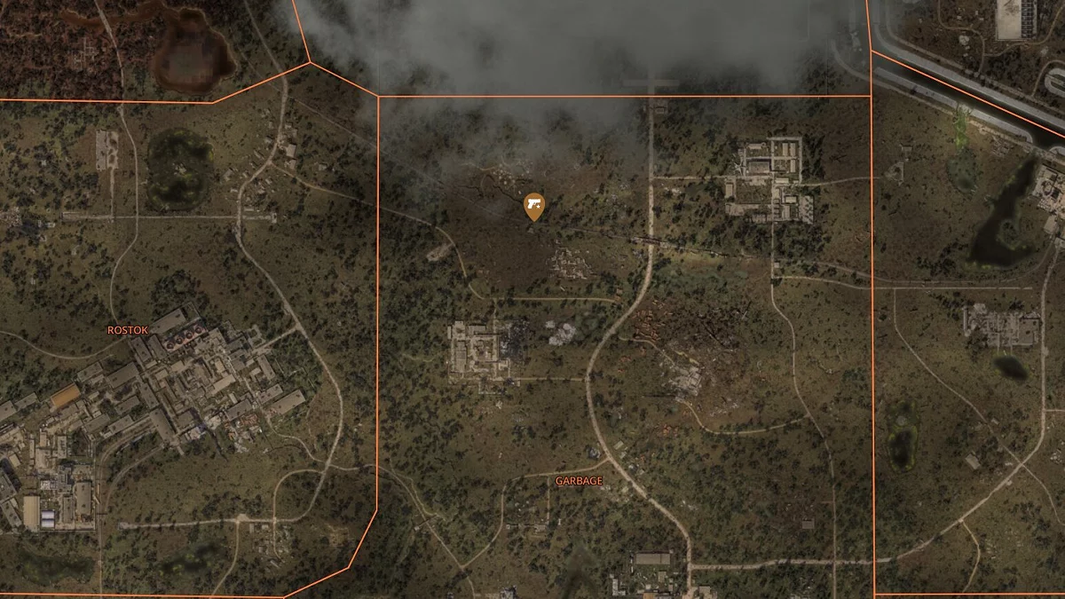 Автомат собранный из частей ВСС. Чтобы его найти, вам нужно отправиться к Военным складам в регионе «Химзавода». Рядом с локацией вы увидите цилиндрическое вентиляционное сооружение из бетона. Рядом будет лежать мертвое тело. У сооружения будет полуразрушенное основание. Забросьте туда гранату, чтобы взорвать стену. Вам откроется проход к сейфу. Откройте его и заберите пушку.