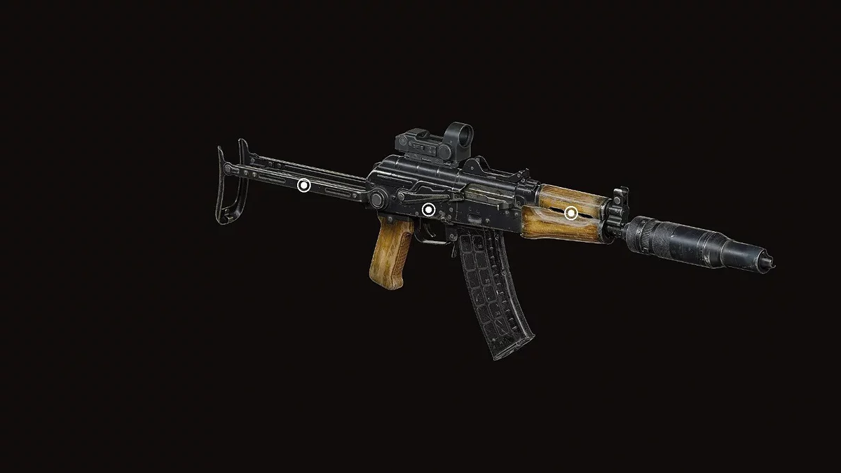 АКМ-74У — компактная версия полноразмерной AKС-74C. Использует тот же тип патронов и предлагает схожие с оригиналом характеристики. Надежная штурмовая винтовка для первого акта сюжетной кампании. Улучшать ее нет никакого смысла, так как эта пушка по факту — стартовый минимум для выживания в зоне. Ее истинное предназначение — быть ценным ресурсом для бартера. Все. Ничем выдающимся она похвастаться, увы, не может.