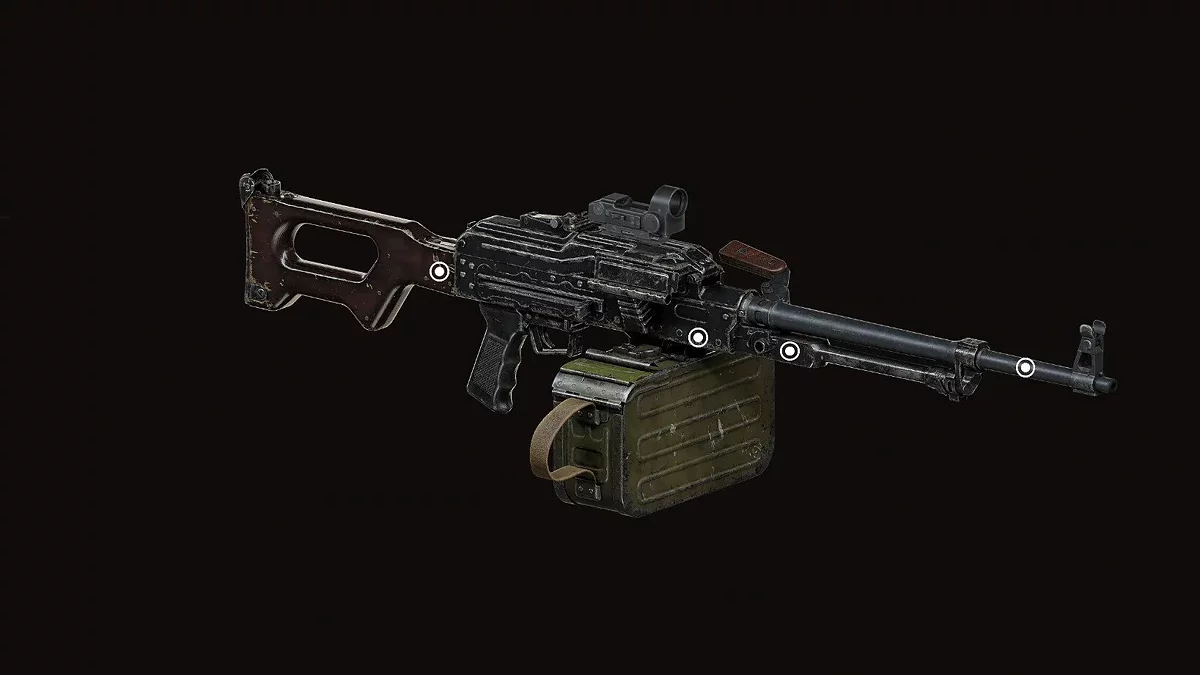 РПМ-74 — сочетание мощи крупнокалиберного пулемета и портативности штурмовой винтовки. Идеальное оружия для истребления целых полчищ противников. Пулемет можно найти в локации «Выход путепровода» в районе базы «Росток». Также на севере от «Ростока» есть схрон с сейфом. Введите код: 195726 и забирайте пулемет.