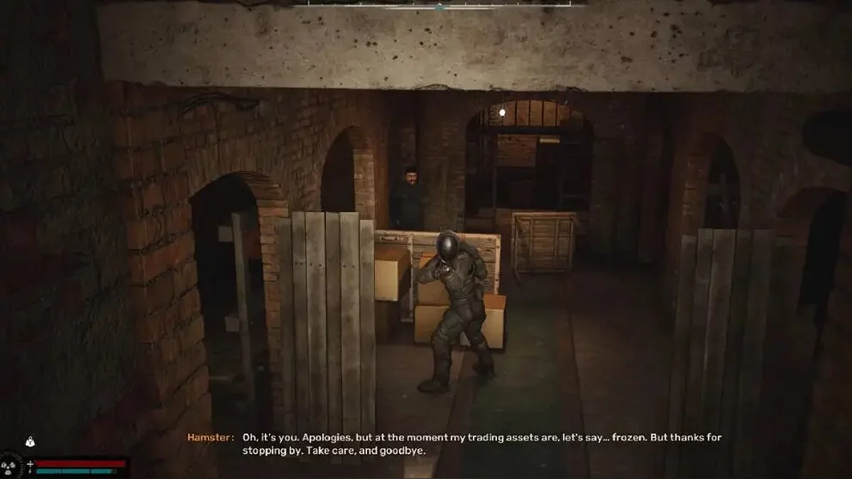 Если вы заплатите телохранителю Хомяка, он направится присматривать за другим персонажем в главное здание. Как только он откроет дверь, чтобы войти, оба упадут и умрут неизвестно от чего, а все сталкеры в поселении станут враждебно настроены против Скифа.
