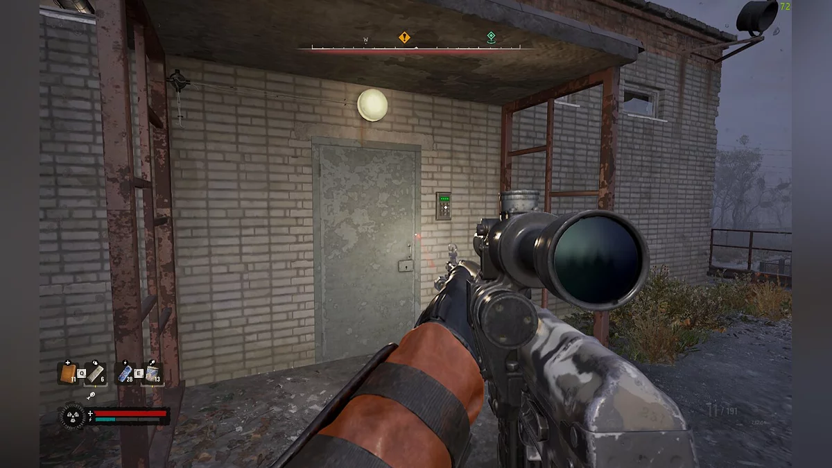 Вы также можете использовать альтернативный путь для входа в эту локацию. Для этого воспользуйтесь дверью на поверхности, которая расположена внутри юго-восточного КПП. Код от этой двери — 2711. Попав внутрь, в комнате за дверью вы найдете противогаз «Аэрозащита», спрятанный за столом, а также сможете забрать несколько припасов, хранящихся в сейфе.