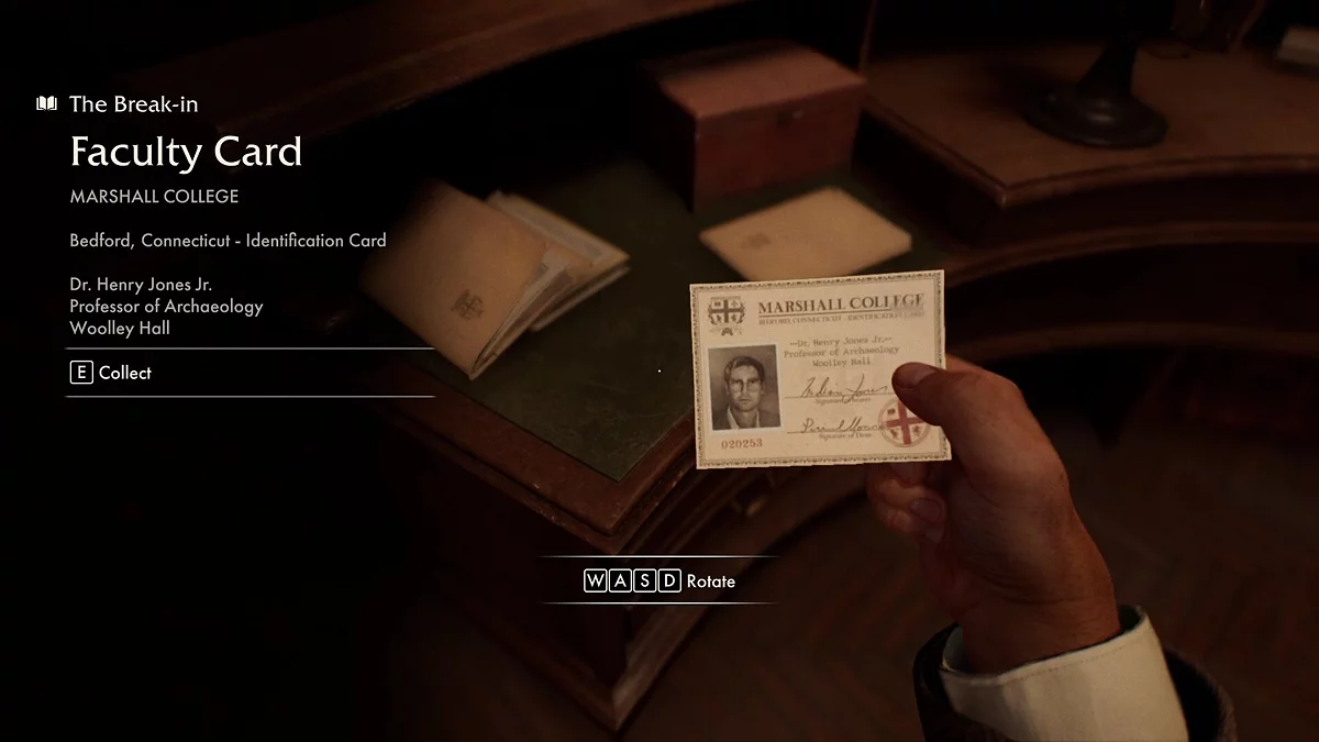 Очнувшись, игра предоставит возможность осмотреть колледж и найти все предметы в этой области. Если вы не подбирали бейдж (Faculty Card) на столе ресепшена, вернитесь и сделайте это.