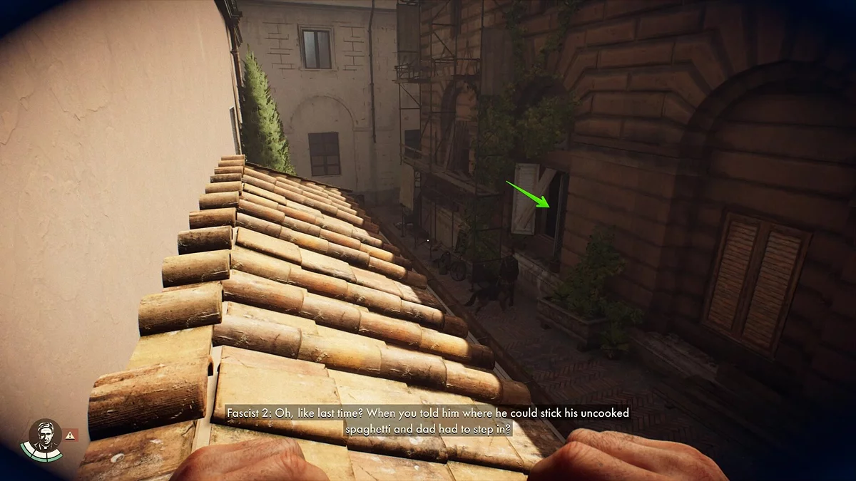 Поднимайтесь по водосточной трубе на балкон, затем на крышу здания. Заберите книгу (Climbing Ace) и используйте канат, чтобы оказаться на крыше балкона другого здания. Спрячьтесь от фрица и подождите, пока он уйдёт, затем забирайтесь в окно почтового отделения.