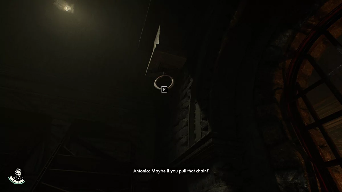 Следуйте к запертому помещению и отыщите отверстие в полу. Ныряйте в воду и плывите на другую сторону. Открыть решетку для Антонию можно, использовав кнут на цепи под потолком.