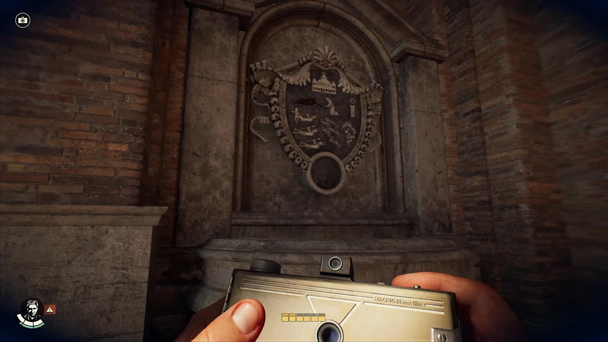 Следуйте к большой сцене и обойдите её. Заберитесь по строительным лесам, заберите ремонтный набор и осмотрите монумент в стене, чтобы сделать его фотографию