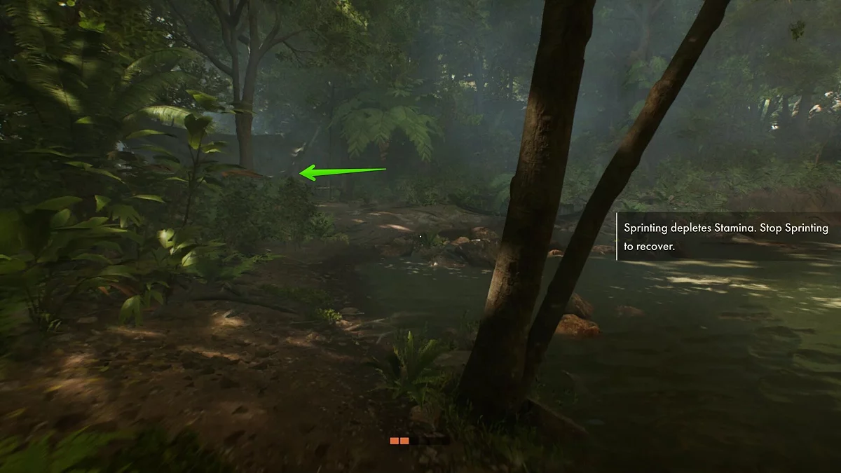 Продолжайте следовать за маркером на карте, пока не обнаружите ядовитый дротик. Уберите с дороги поваленную ветку и смотрите катсцену, в которой придётся вовремя нажать на клавишу взаимодействия.