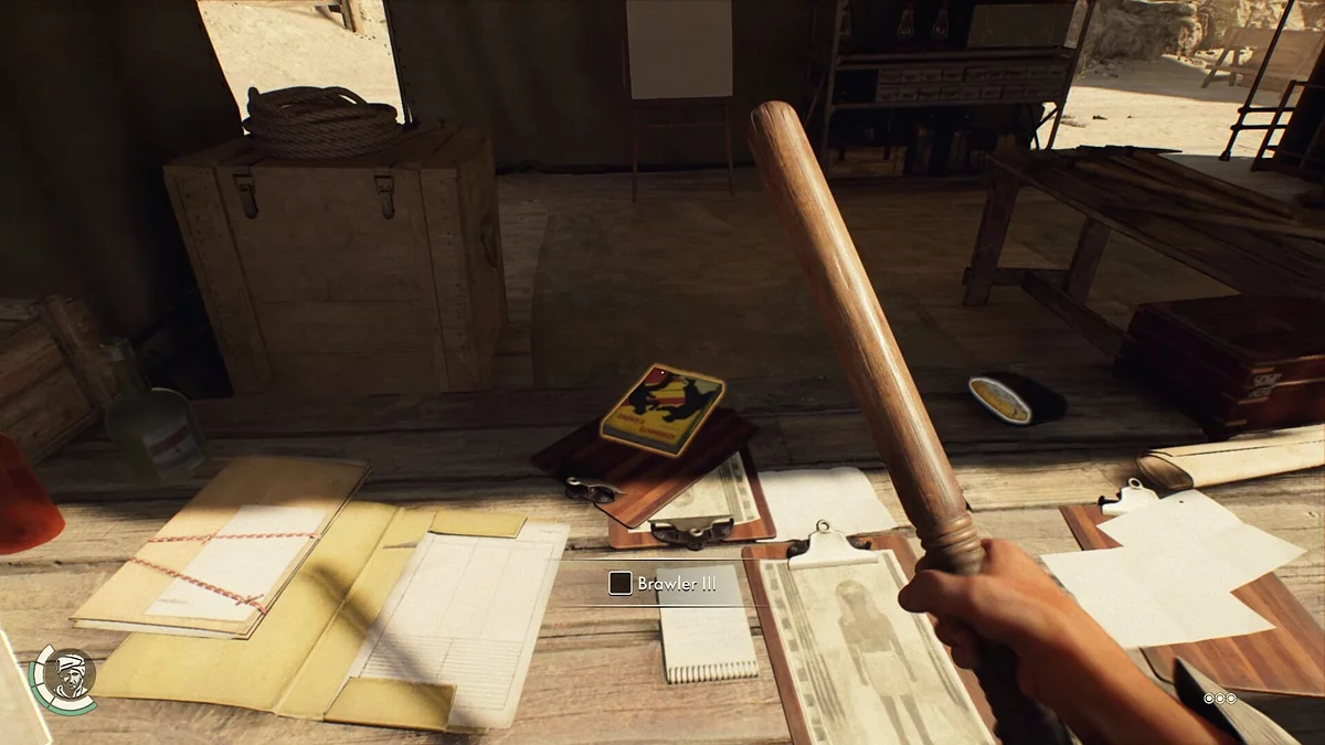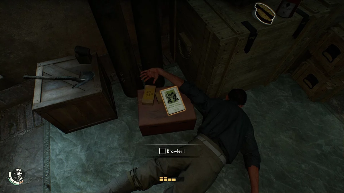 Используйте трос, чтобы попасть в другую часть локации. Из погреба выманите одного врага и оглушите, затем расправьтесь ещё с двумя. Рядом с последним будет лежать книга (Brawler I).