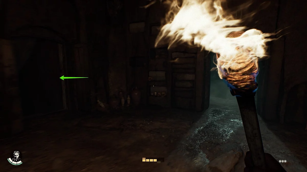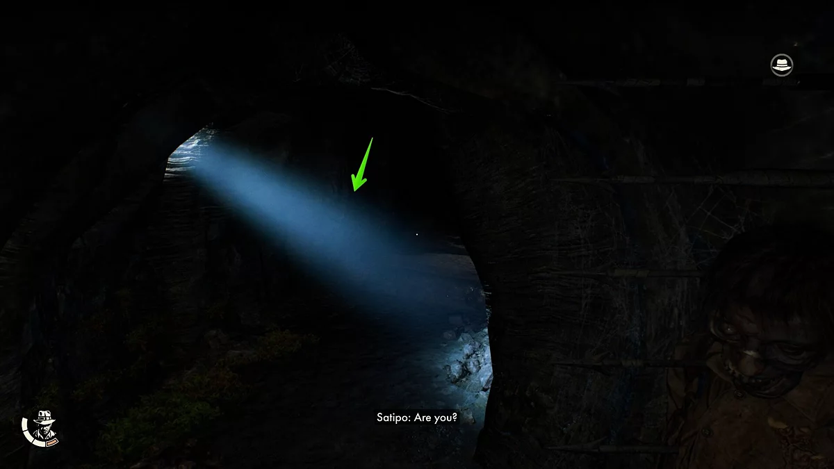 Войдите в пещеру и избавьтесь от паутины, затем помогите носильщику очистить пауков с одежды. В следующем проходе вы увидите солнечный свет, падающий на стену. Обходите его стороной или получите урон от копьев.