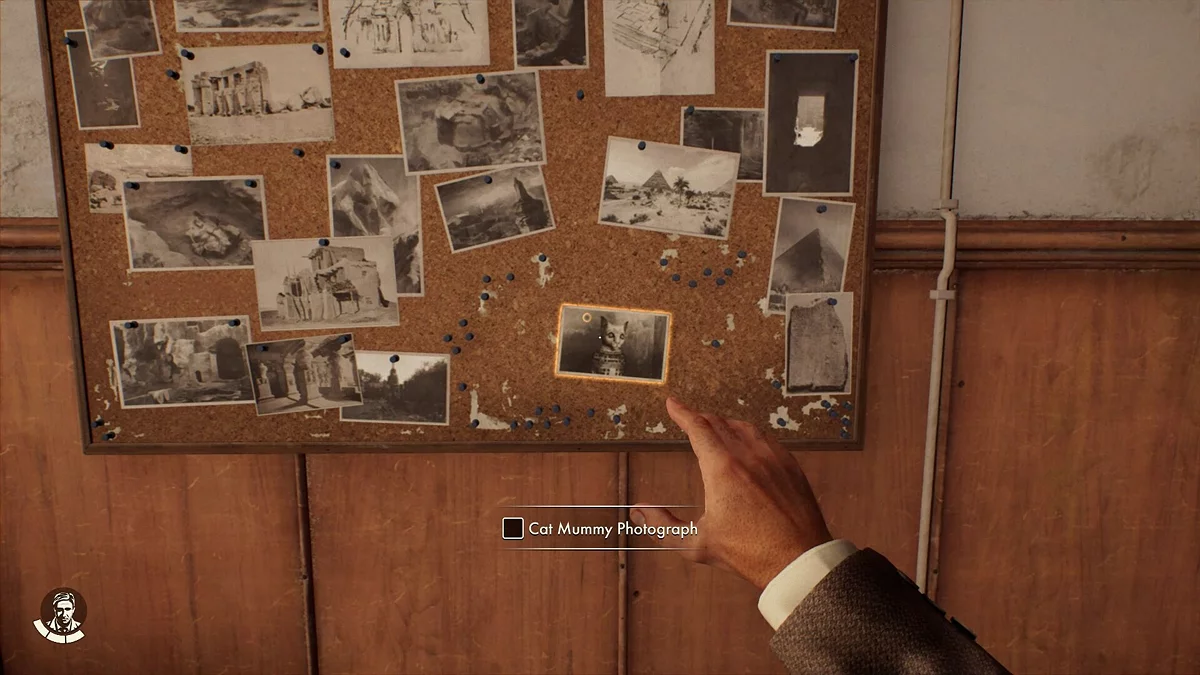 - Фотография мумифицированного кота — на доске, на дальней стене комнаты.