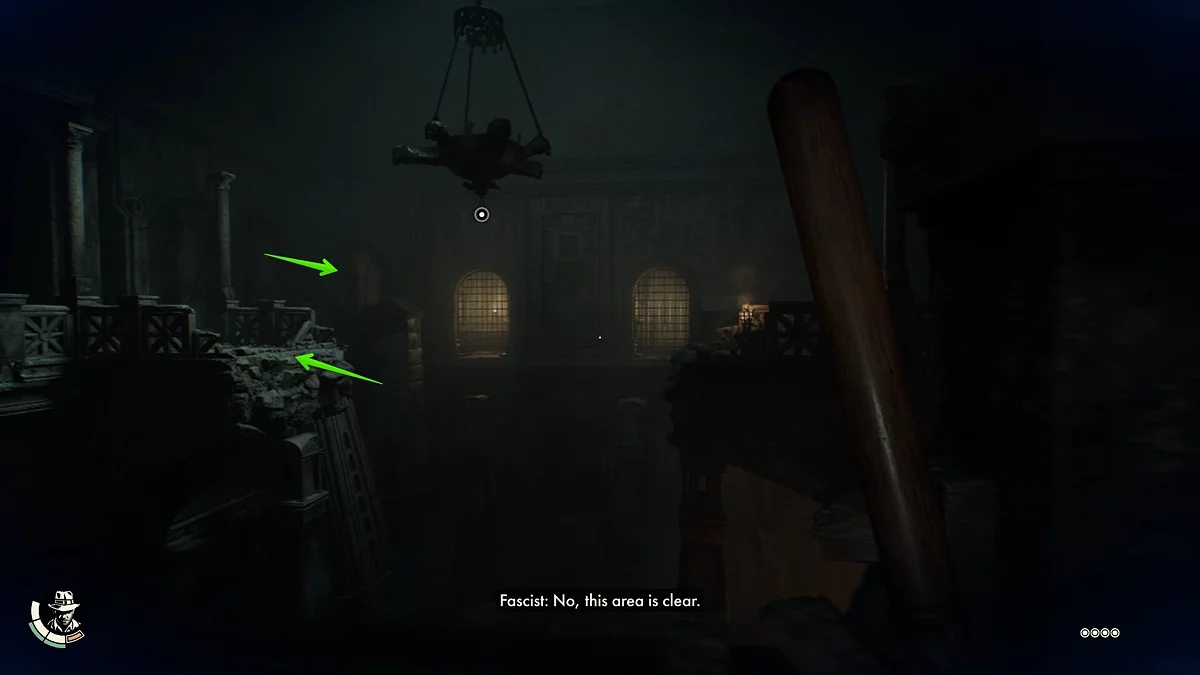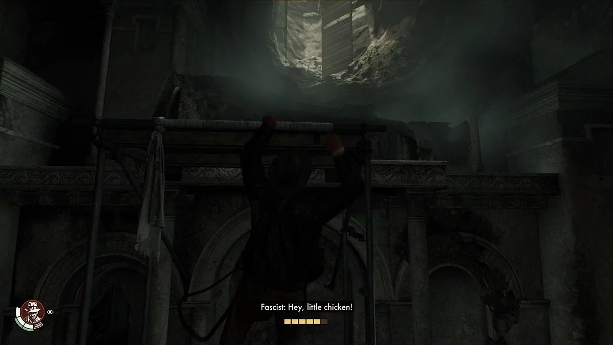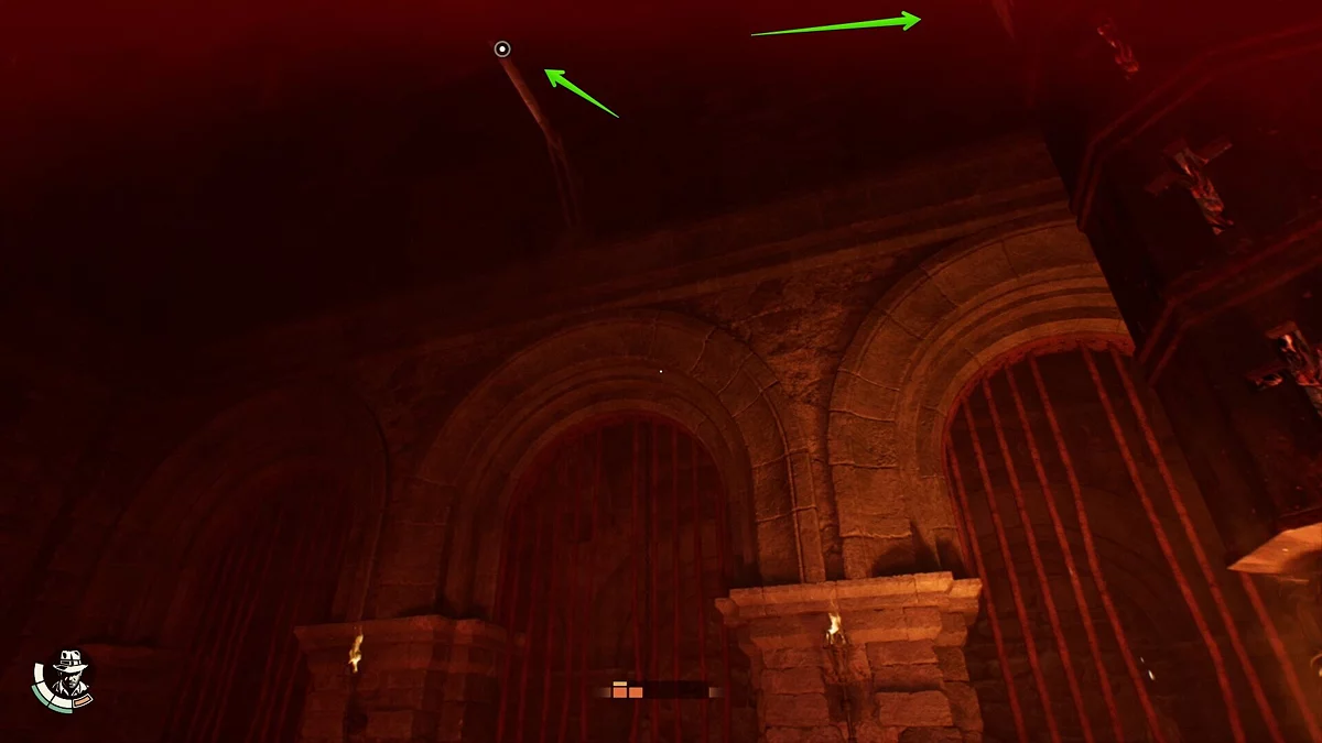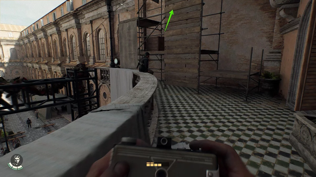 Находясь на этом же балконе, избавьтесь от фрица. Если этого не сделать, он поднимет тревогу, как только вы используете кнут. По строительным лесам забирайтесь ещё выше и запрыгивайте в окно. Здесь есть дополнительная головоломка House of God, о решении которой мы расскажем в отдельном руководстве.