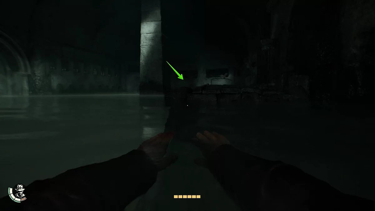 Доберитесь до большой каменной конструкции, напоминающей стену, экипируйте новое устройство для дыхания под водой и ныряйте. Плывите по единственному тоннелю, уберите каменную плиту с прохода и воспользуйтесь карманом справа, чтобы восстановить запас воздуха.