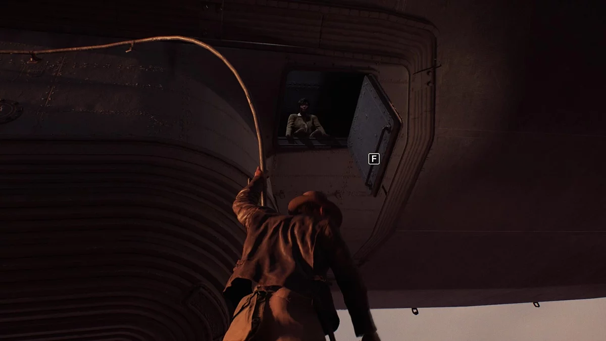 Когда видеоролик завершится, придётся пробираться в носовую часть судна. Дело осложняется тем, что корабль в прямом смысле движется вниз по скалам. Используйте кнут и доступные уступы, чтобы добраться до Джины. Когда герои воссоединятся, вскоре окажутся в Шанхае.