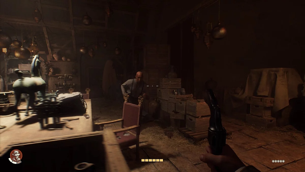Используя кнут, взбирайтесь по строительным лесам на крышу и забирайтесь в окно. Слева от лестницы на бочке лежат деньги. В следующем помещении избавьтесь от работника и заберите комикс на столе. Здесь же можно открыть ящик с деньгами.