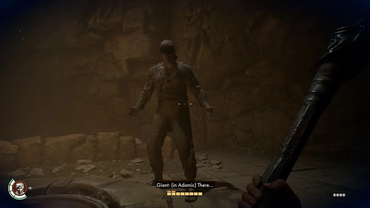 После катсцены игрокам нужно сразиться с гигантом: наносите урон и отходите, чтобы восстановить выносливость.