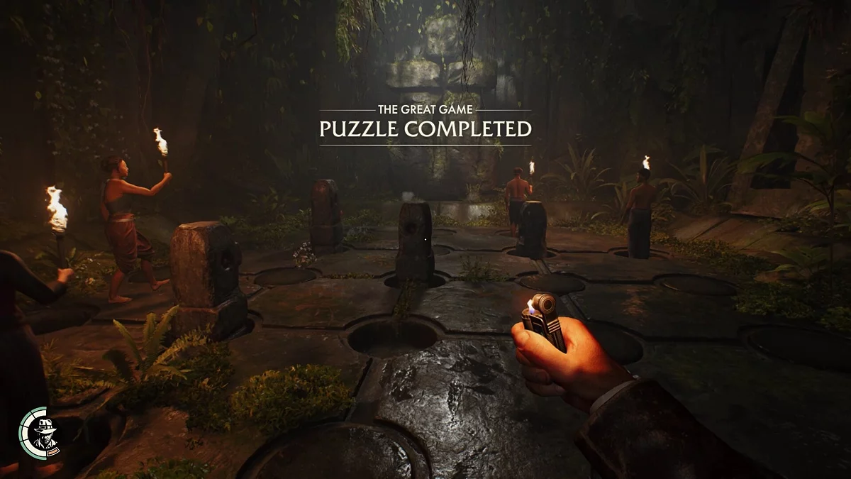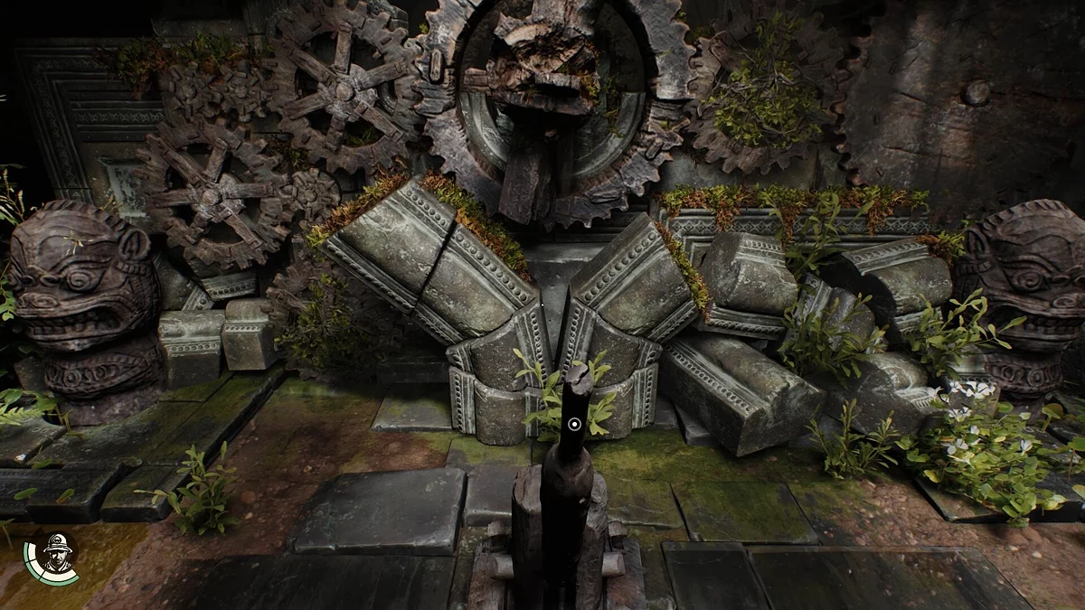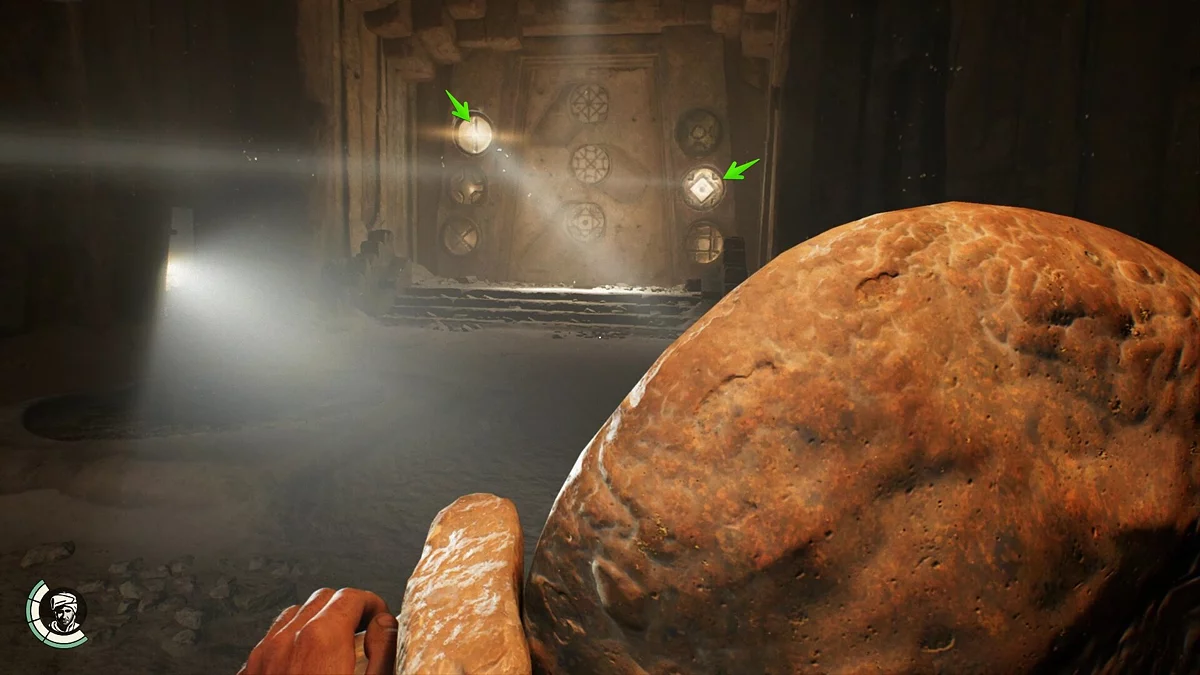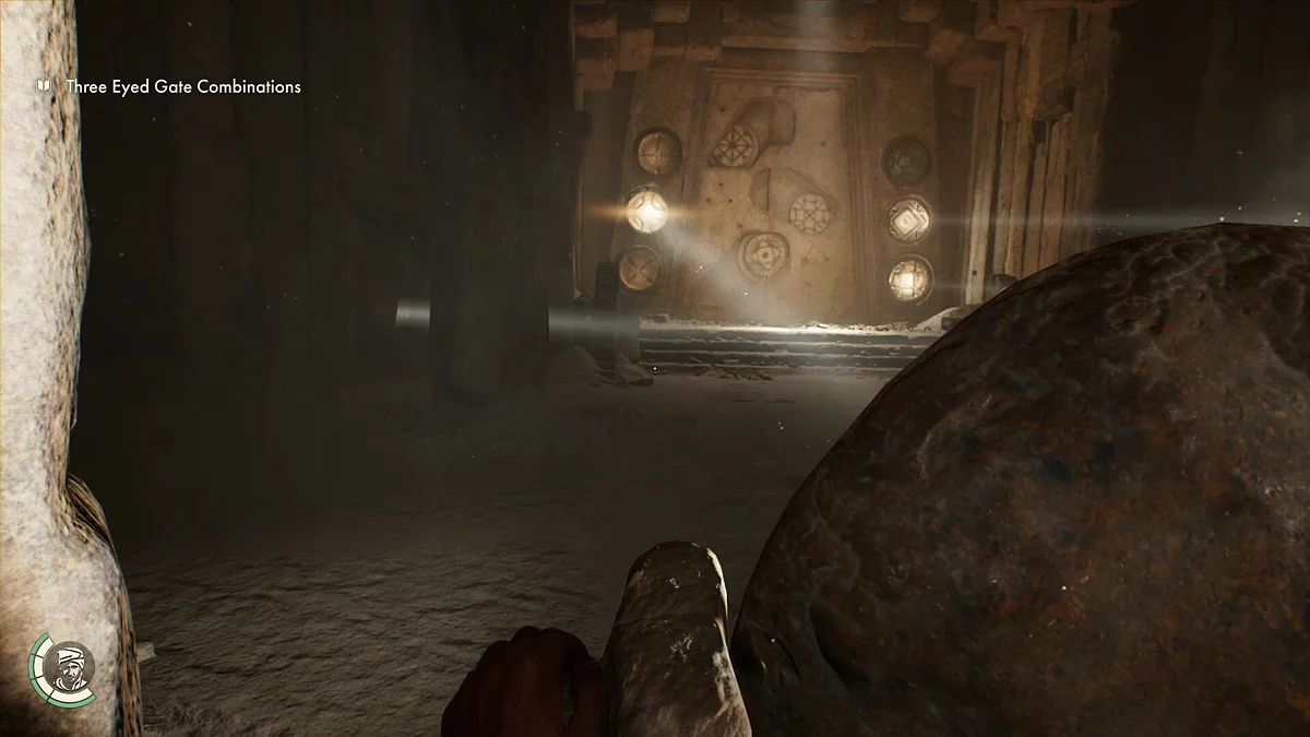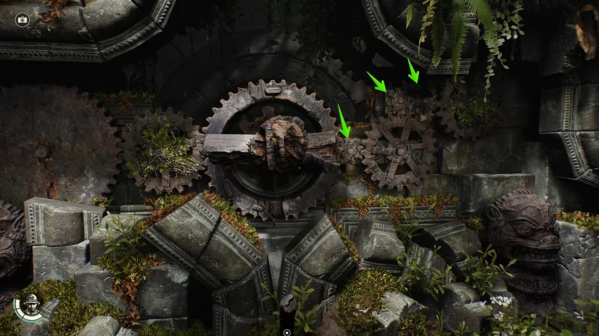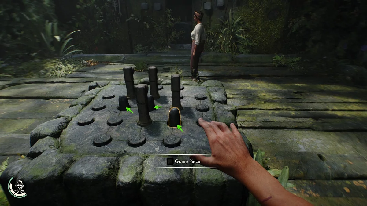 Правила этой игры такие же, как и в древней пирамиде, в которой вы бывали по сюжету и должны были получить ещё один камень. На полу есть плиты круглой формы. Если нажать на плиту рядом с фигурами, они повернутся по часовой стрелке. Геймерам нужно сделать так, чтобы все четыре фигуры смотрели в сторону входа в храм.