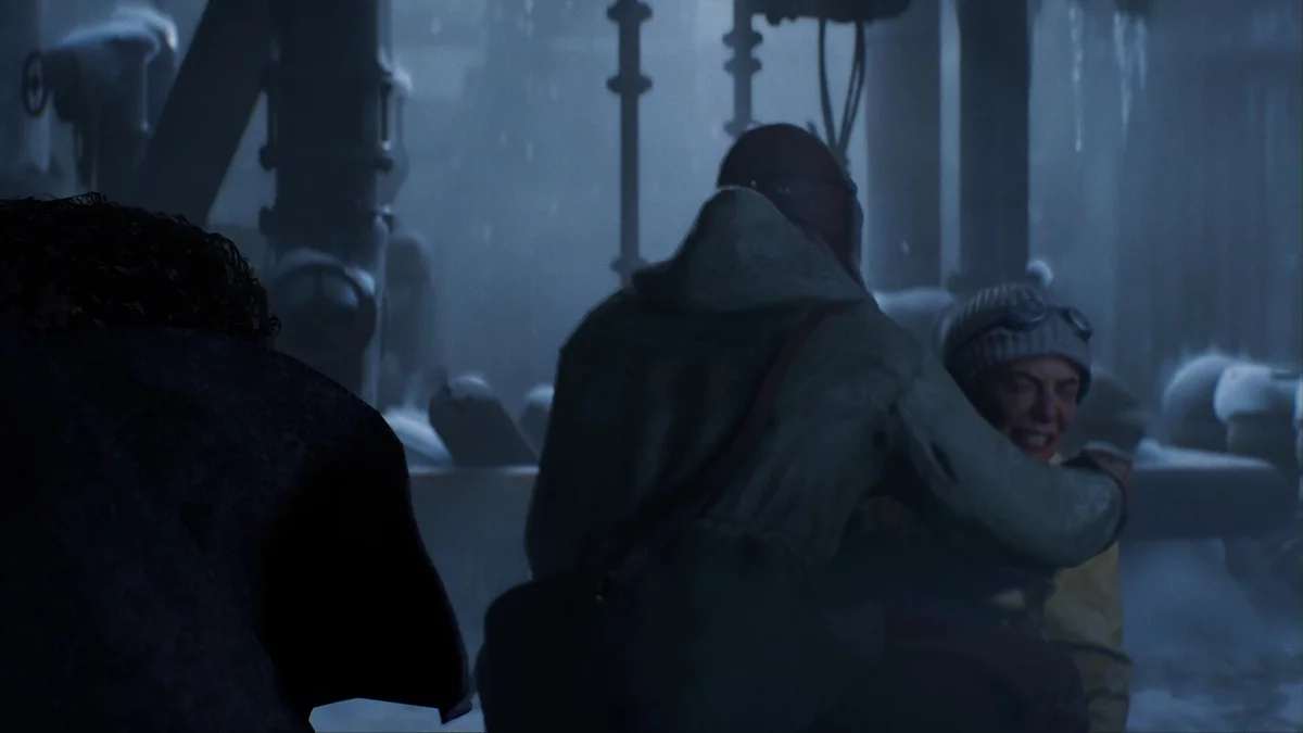 После катсцены подберите у двери карту корабля и вернитесь к гермозатвору. В следующей каюте можно подобрать страницу дневника, бинты, а также найти проход в другой отсек. Предварительно для этого разбейте обледеневший проход. Спрыгивайте вниз и взаимодействуйте со сломанной трубой. Как только окажетесь в основном отсеке, смотрите продолжительную катсцену.