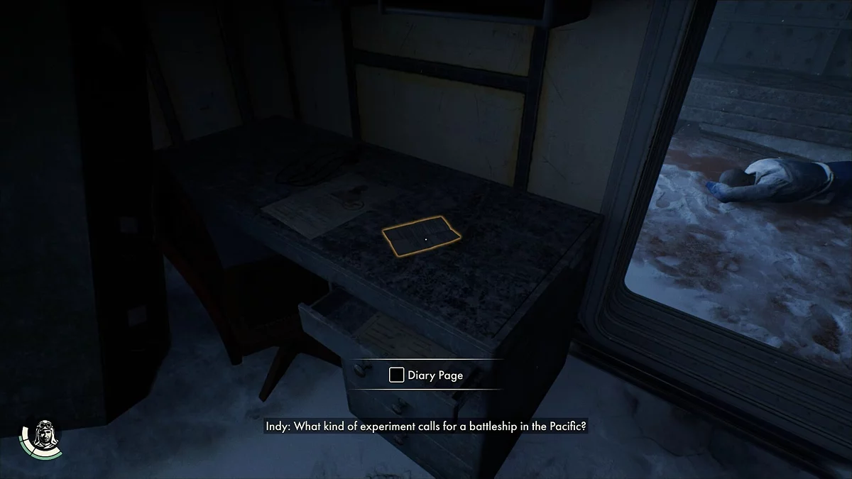 Поднявшись наверх, можете сделать фотографию радиорубки и подобрать бинт. Также осмотрите соседние каюты, чтобы найти книгу навыков Button Man II, несколько страниц дневника и карту Суда.