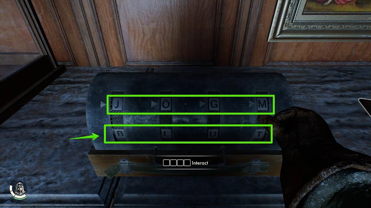 - Когда сделаете это, на нижней строчке сможете отследить следующую комбинацию, которая и понадобится для дверного кода: B-L-U-T.