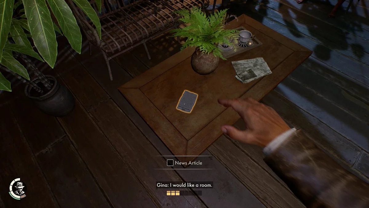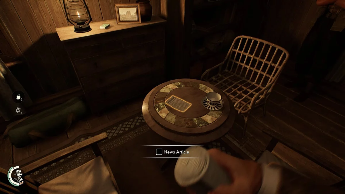 Как только управление перейдёт к герою, сразу же на столике подберите карту региона. Осматривая дома вы найдёте письмо, газетную вырезку, и сможете сделать огромное количество фотографий, чтобы получить очки приключений.
