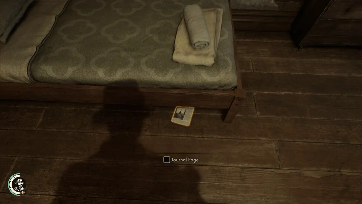Поболтайте с Джиной и направляйтесь к телефону в правом дальнем углу здания. После катсцены поднимитесь на второй этаж и войдите в свою комнату, открыть которую можно при помощи ключа. Под кроватью в комнате Индианы заберите страницу журнала.