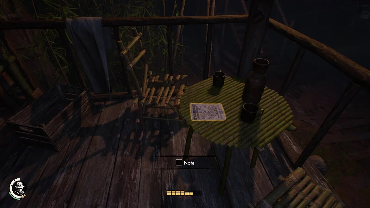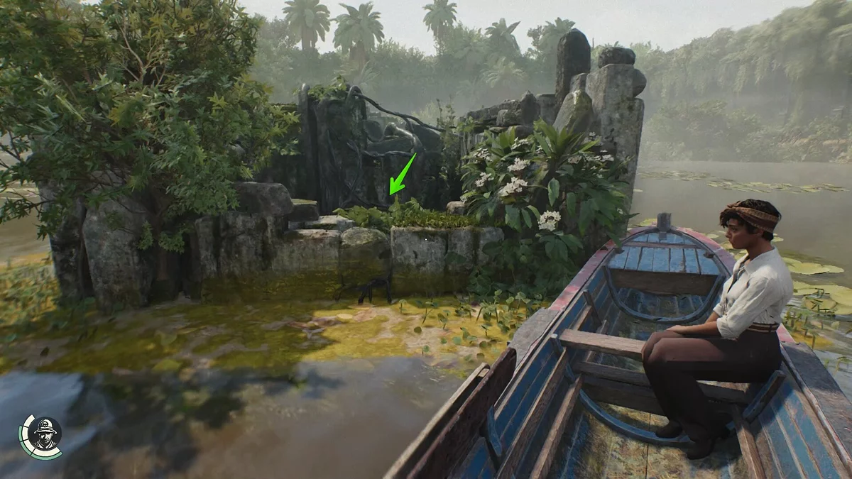 Если от дома Инди пройти по правой стороне, обнаружите заметку с рецептом рядом с хижиной лекаря и статую божества на обратной стороне поселения. Когда будете готовы, вернитесь к Джине и садитесь в лодку.