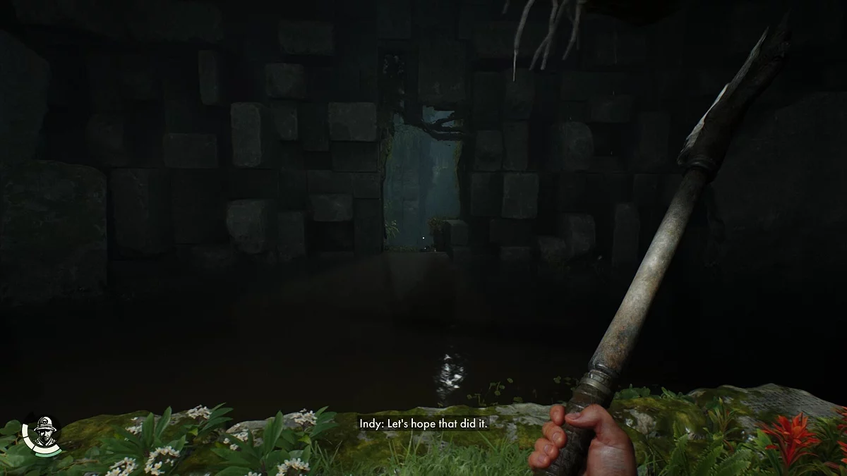 Войдите в единственный проход и бегите по левой стороне, преодолевая препятствия. Старайтесь не погружаться в воду, иначе Индиана будет получать урон. Находясь на центральной платформе, осмотрите правую сторону. Здесь есть несколько плит, по которым можно добраться до очередной реликвии.