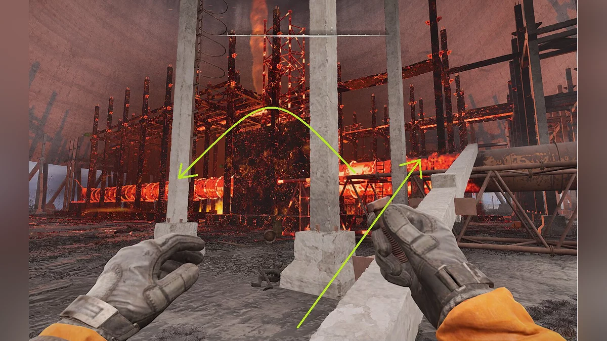 Прибыв в эту локацию, вы обнаружите, что аномалия окружена бетонными стенами со всех сторон, создавая эффект замкнутого пространства. Вокруг огненного вихря разбросаны различные металлические предметы, такие как трубы и лестницы. Огненный смерч воздействует на металлические предметы с определенным таймингом, который мы подробно объясним ниже. Мы также расскажем, что необходимо взять с собой в эту аномалию, чтобы избежать гибели и продлить свое пребывание в этом опасном месте.