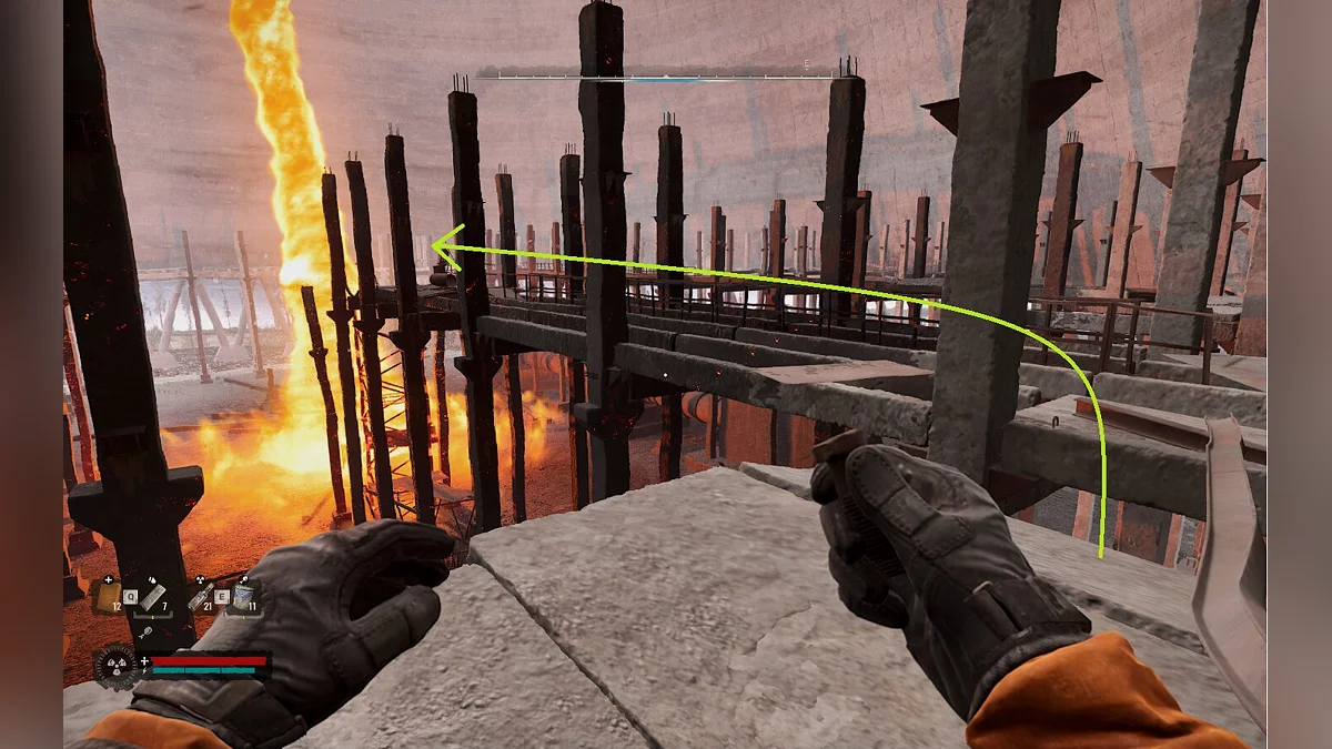 - Когда объекты остынут, бегите к строительным лесам, запрыгивайте на них и забирайте заслуженный артефакт.