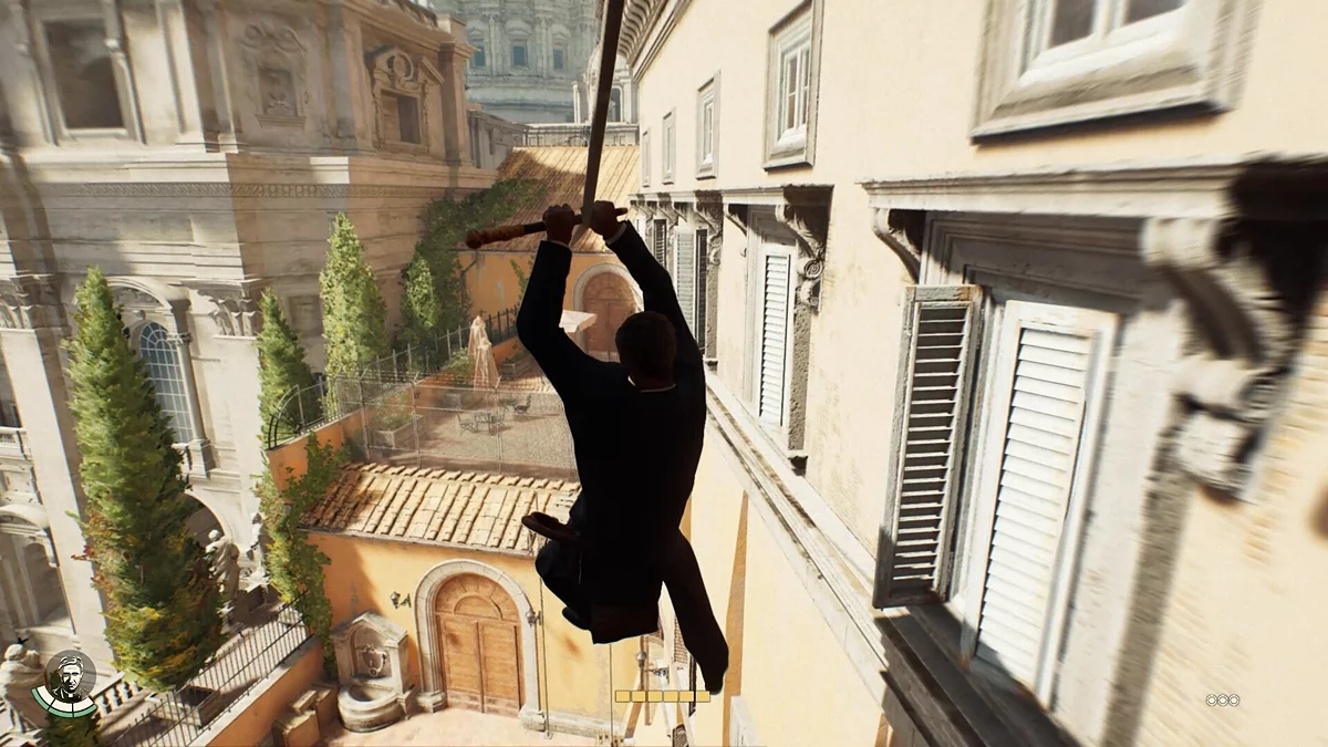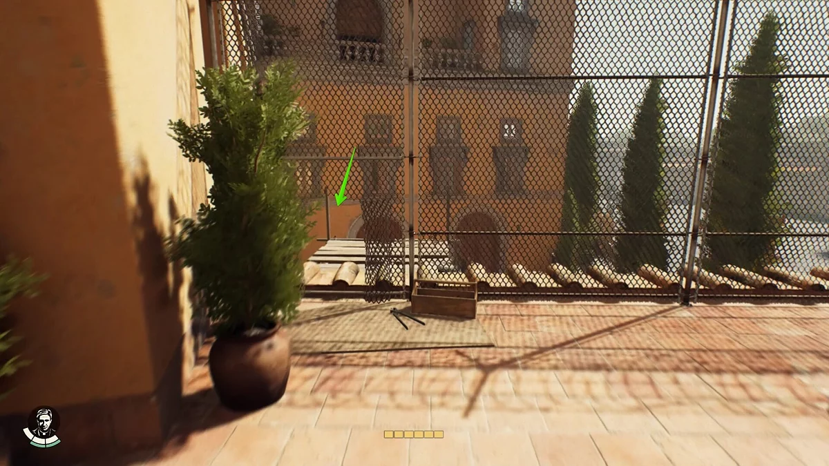 Продвигайтесь по сюжету до момента, когда нужно будет спуститься в катакомбы под башней Николаса V. Сделав это, вы сможете открыть гробницу и получить ценные сведения, которые нужно показать отцу Антонио. Но перед этим, как только вы выберитесь из подземелья, познакомитесь с Джиной. После беседы с новой знакомой, на балконе вы можете использовать трос и перебраться на другой балкон.