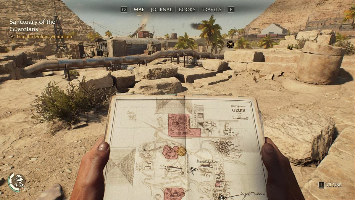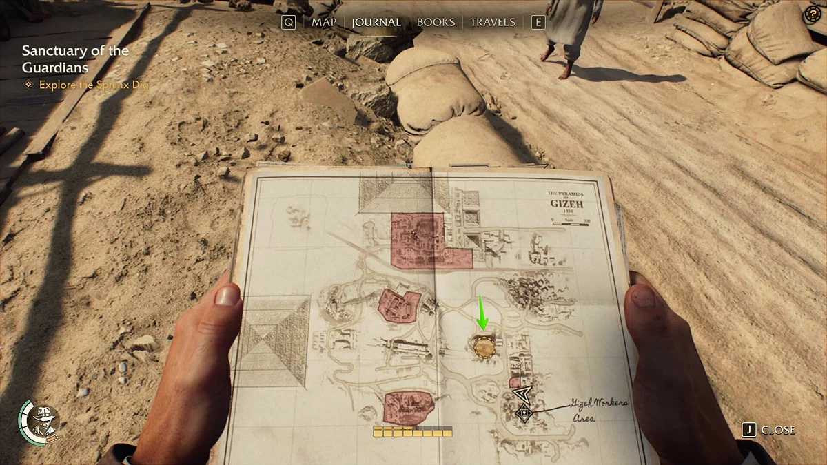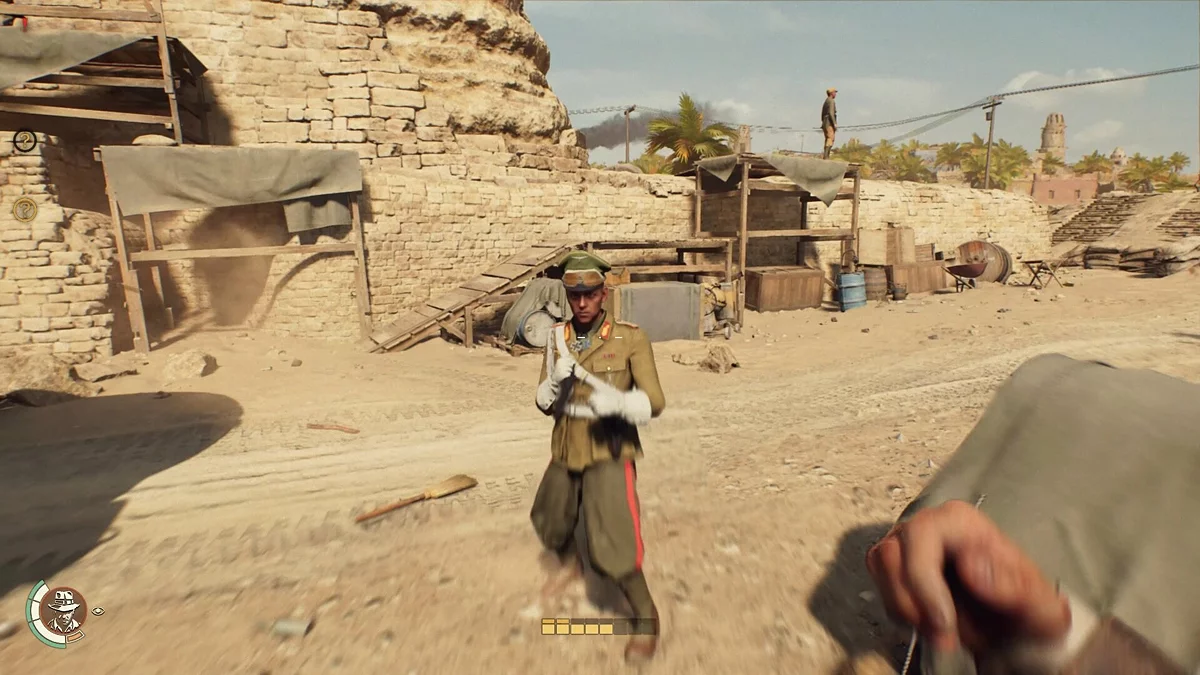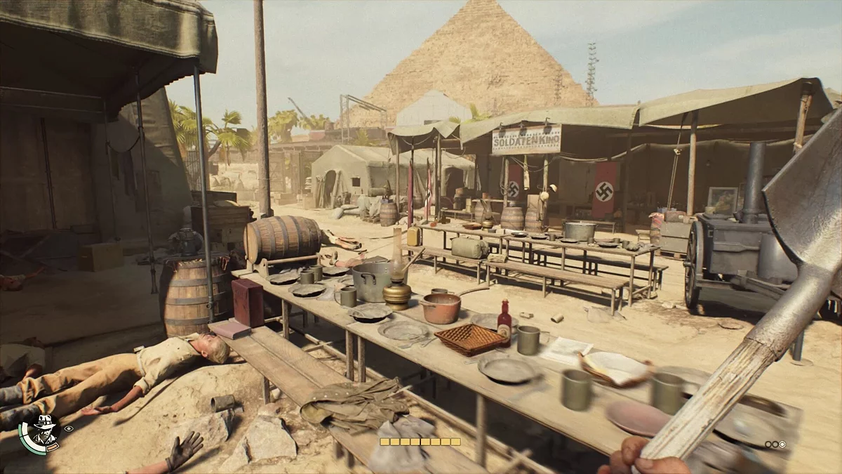 После диалога с Джиной на карте появится маркер. Он приведёт вас прямо к основанию статуи Сфинкса, где также будут ждать немецкие военные. Избавиться от последних не сложно — для этого всего лишь понадобится использовать подручные предметы.