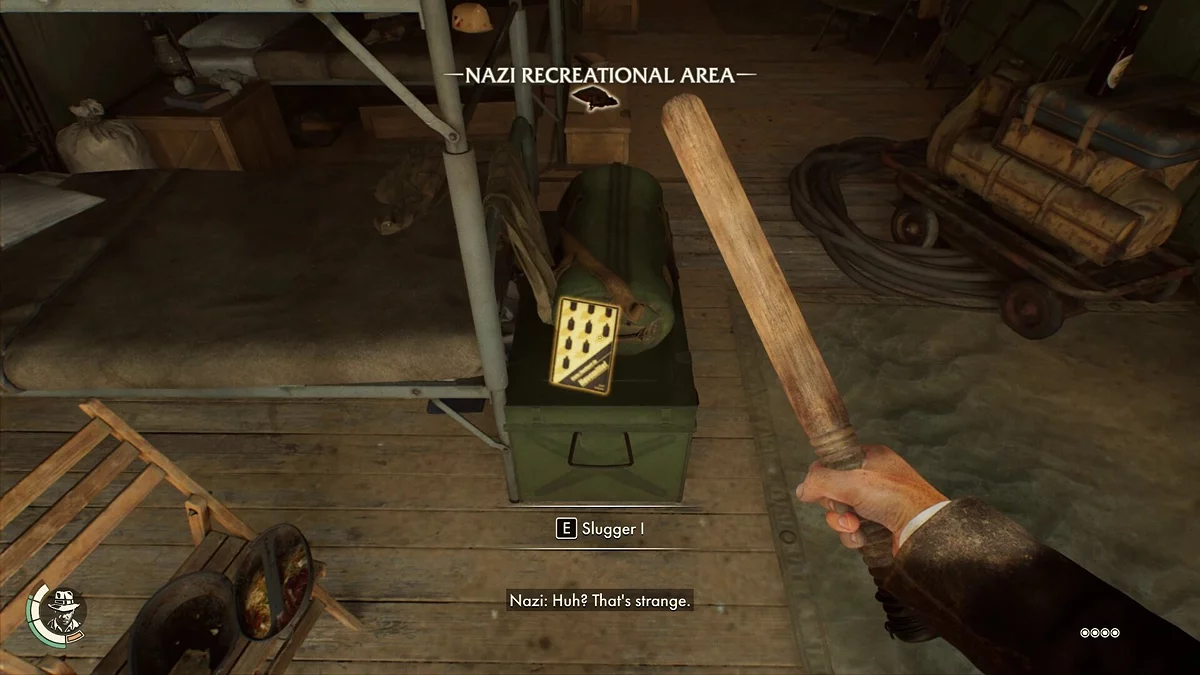 Однако это не наша основная цель. Бегите дальше через очередной лагерь нацистов. В одном из них, прямо между вашей целью и метеорологической станцией, можно отыскать книгу навыков Slugger I. Будьте внимательны, так как в этой области довольно много военных. Но мы предпочитаем избавляться от них. В этом же лагере можно обнаружить бутылочку с лекарством и немного денег.