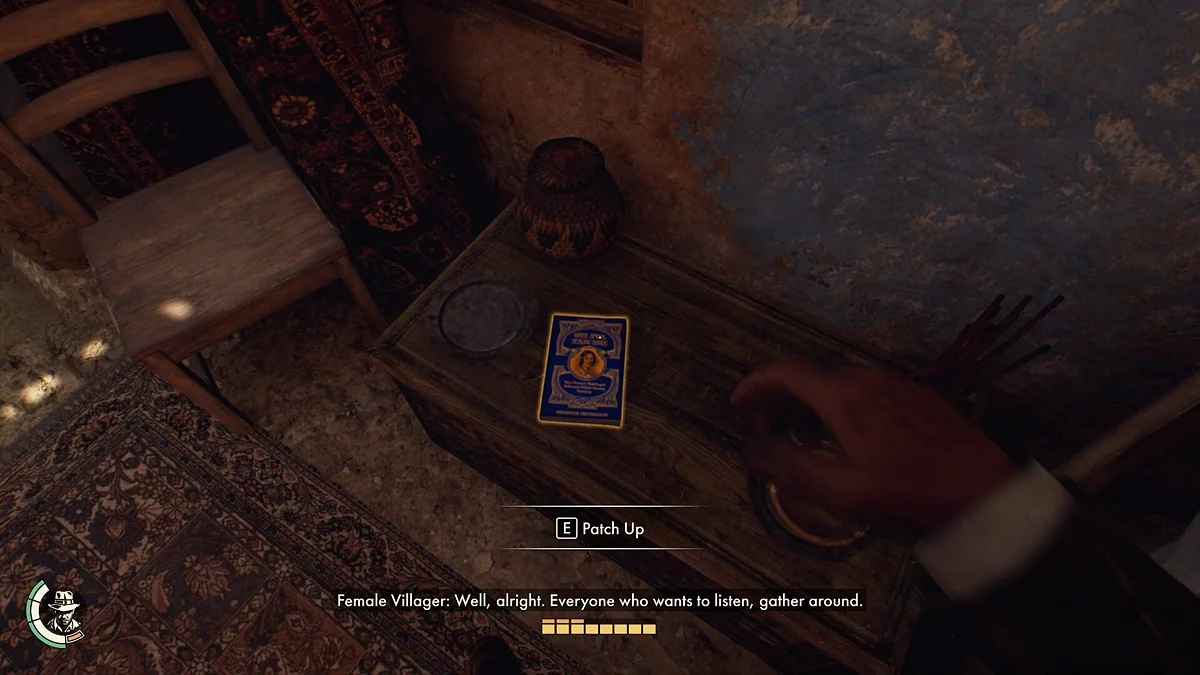 На карте появится очередной маркер. Следуйте за ним и параллельно осмотрите поселение. Здесь можно сделать достаточно много фотографий, за которые Индиана получает очки приключений. Помимо этого, в одном из домов можно обнаружить книгу навыков Patch Up. Когда будете готовы, побеседуйте с торговцем и купите обычную зажигалку всего за 75 лир. Слева от палатки этой торговки на скамье будет лежать игральная карта Повешенного человека.